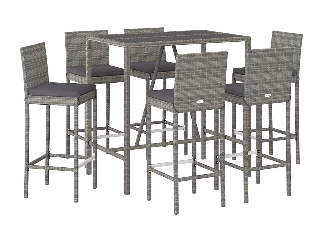 Danick 7-delige Tuinbarset met kussens poly rattan grijs