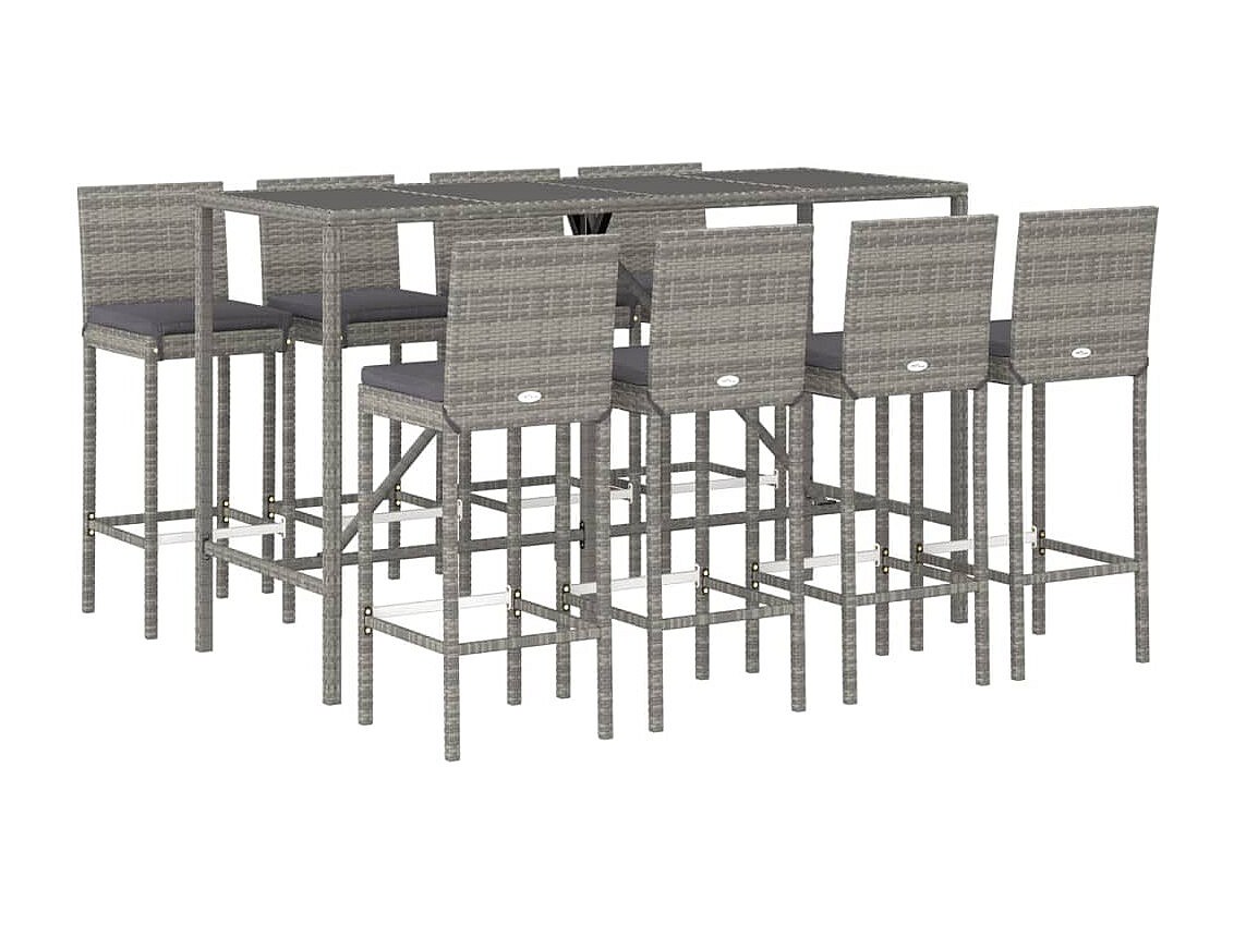 Grylin 9-delige Tuinbarset met kussens poly rattan grijs