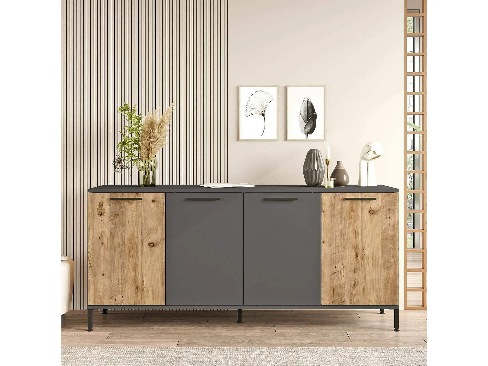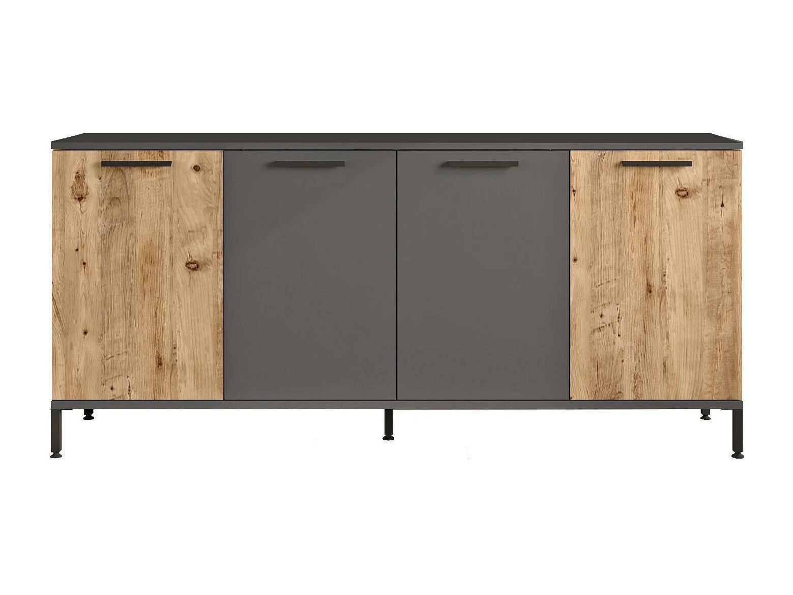 Dantonionobil dressoir, Woonkamerbuffet, Woonkamerdressoir, Keukenkast, 160x40 h72 cm, Eiken en Antraciet