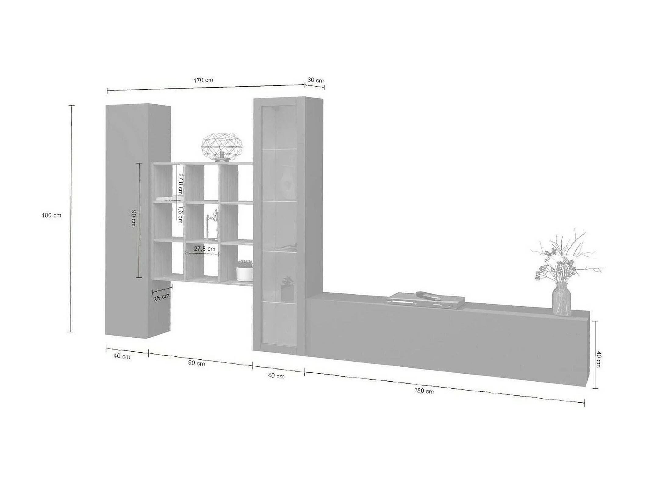 Dmora Woonwand Davis 30x310x180h cm Antraciet Zwart 18 Planken Openslaand en Kantelend, 21 Vakken Made in Italy