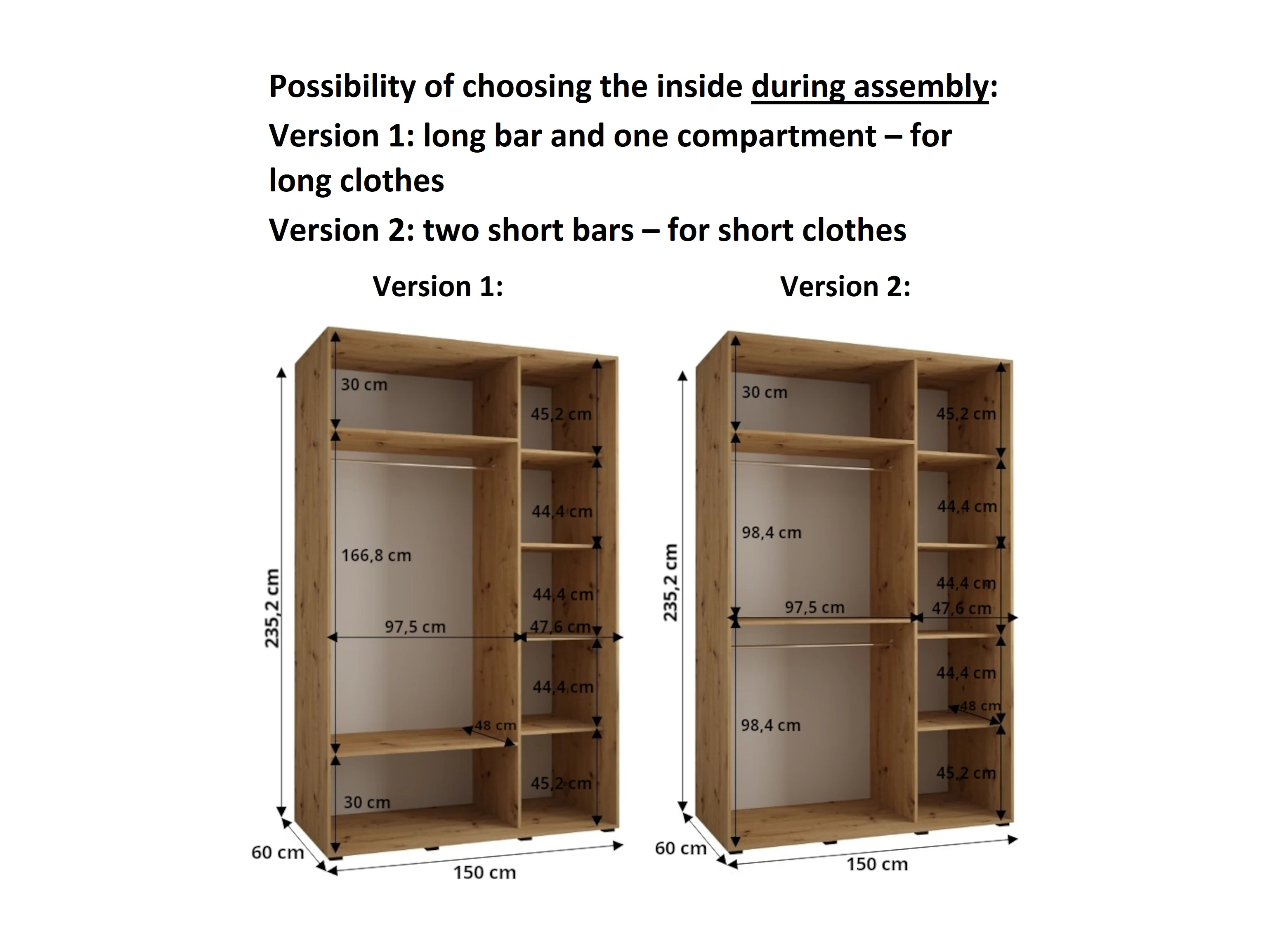 DAVOS 2 KLEDINGKAST MET SCHUIFDEUREN 235,2/150/60 2 deuren (Wit/Wit/Zwart)