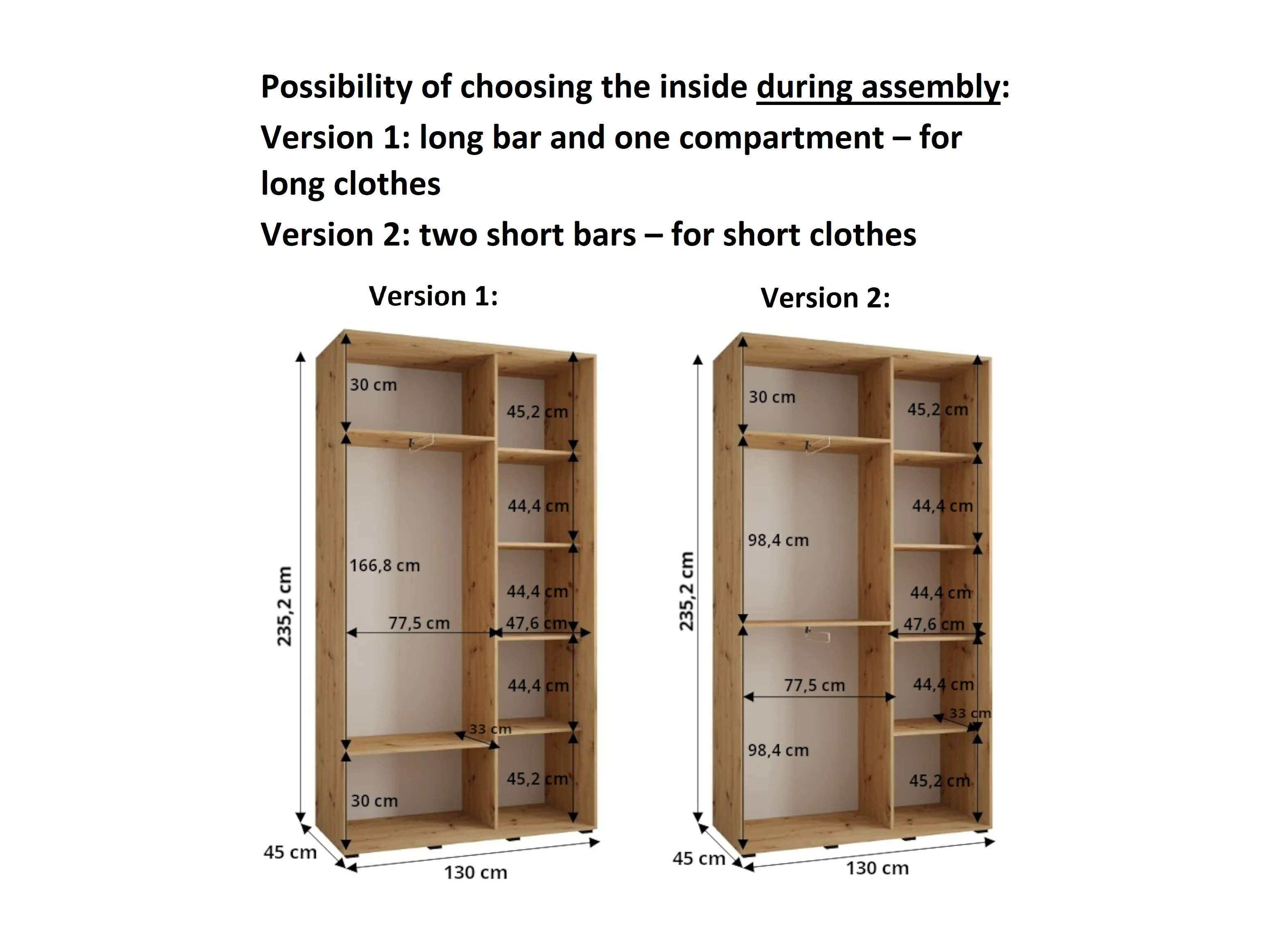 DAVOS 5 KLEDINGKAST MET SCHUIFDEUREN 235,2/130/45 2 deuren (Wit/Wit/Goud)