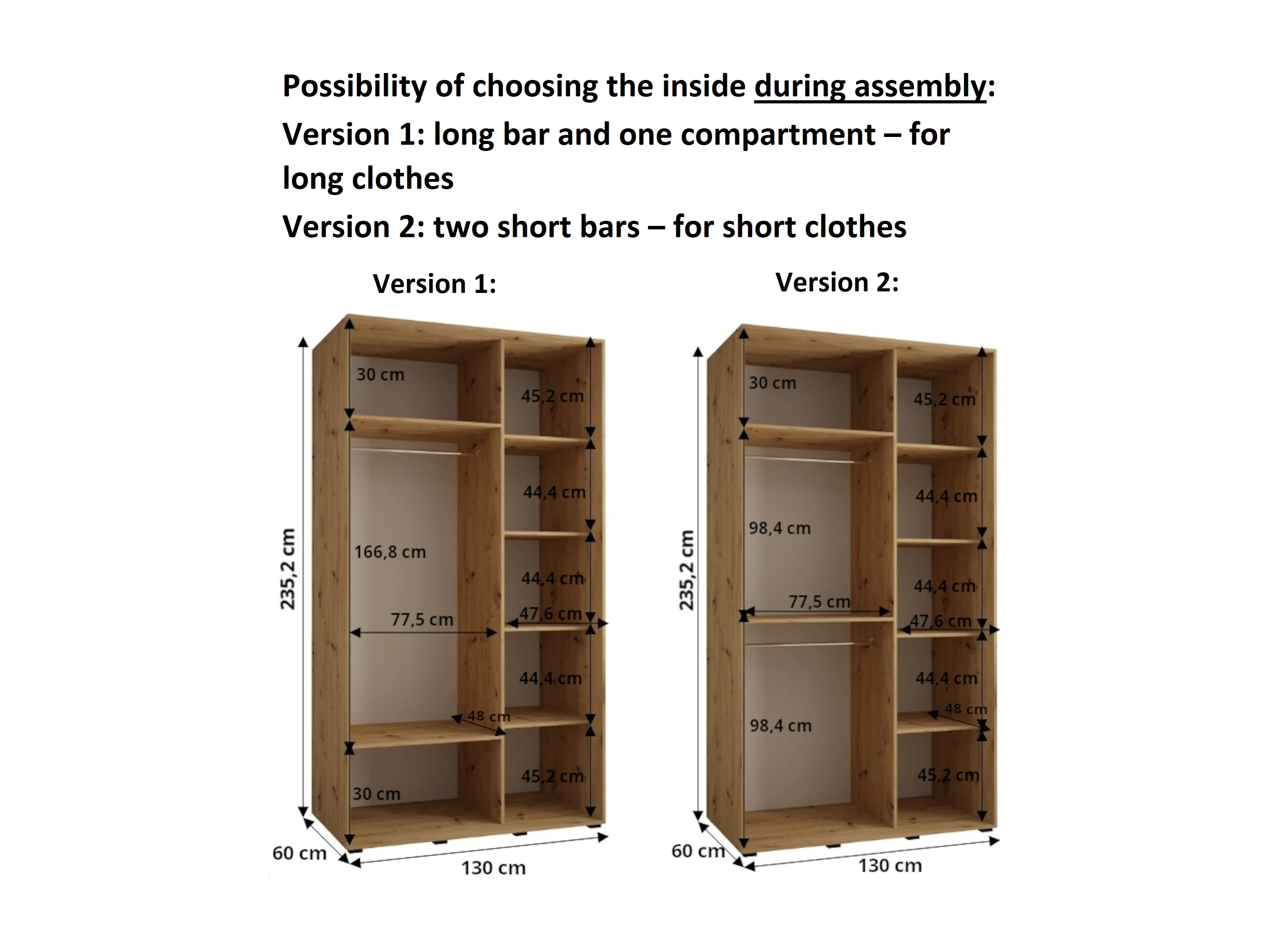 DAVOS 5 KLEDINGKAST MET SCHUIFDEUREN 235,2/130/60 2 deuren (Zwart/Zwart/Zwart)