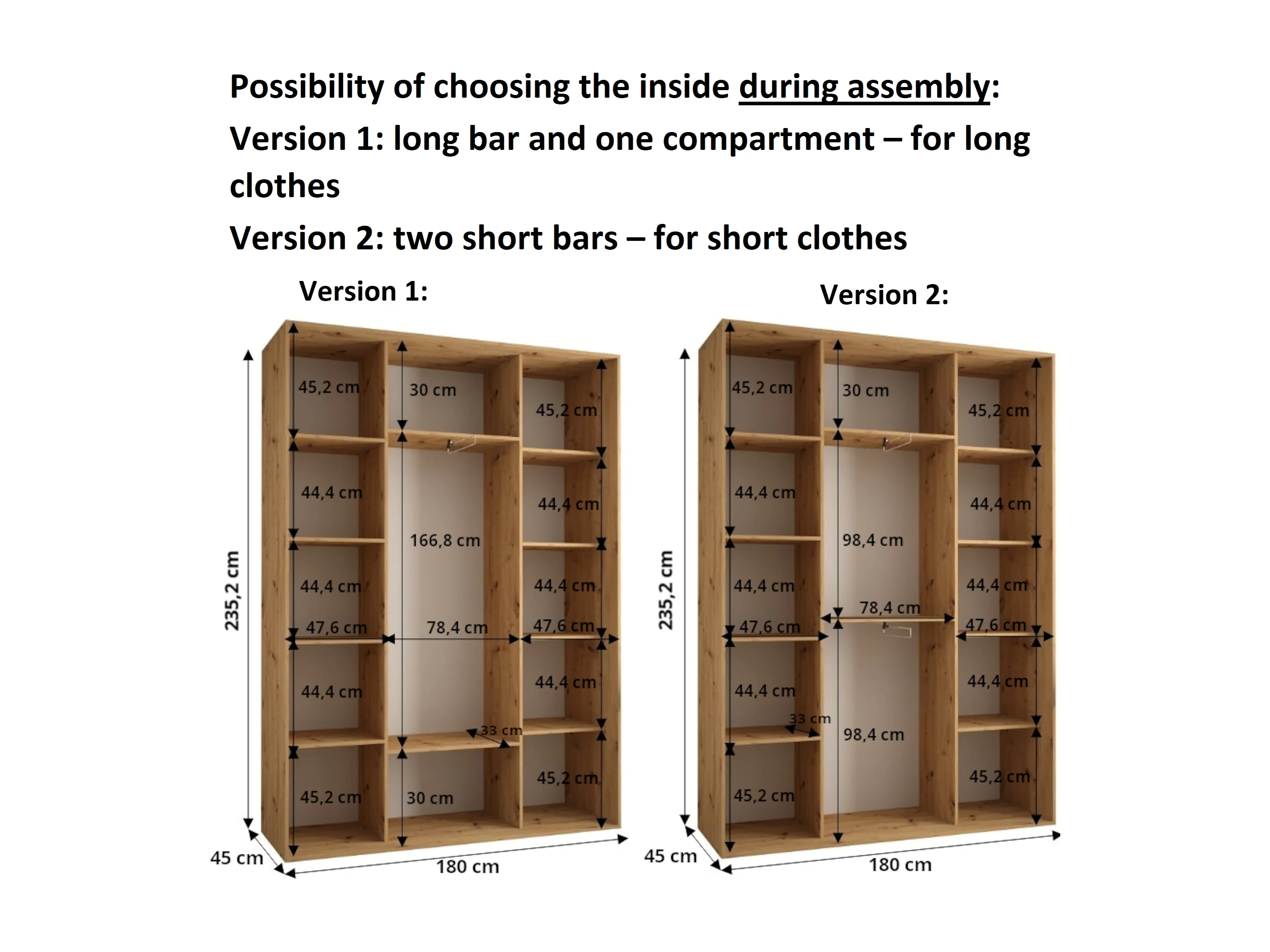 DAVOS 5 KLEDINGKAST MET SCHUIFDEUREN 235,2/180/45 3 deuren (Wit/Artisan/Zilver)