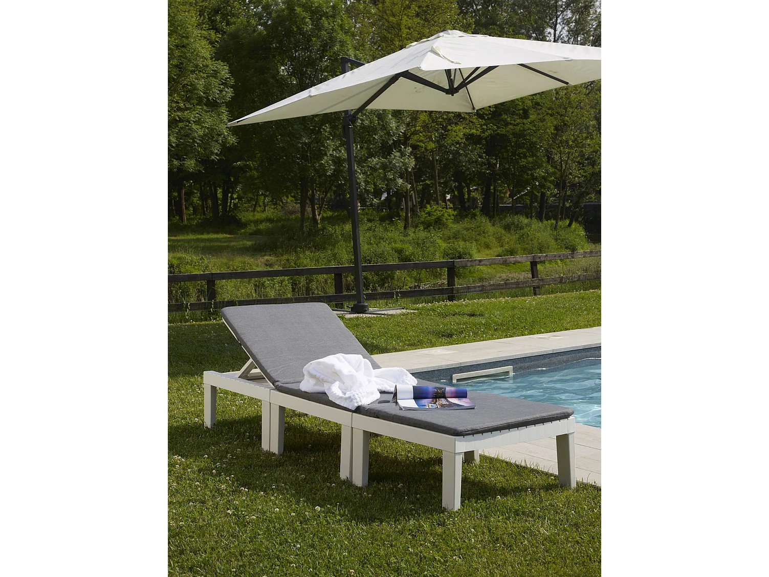 Dbaggi outdoor loungeset, Tuinset met 2 stoelen met rugleuning en 1 multifunctionele module, Lounge met kussens, 100% Made in Italy, Wit