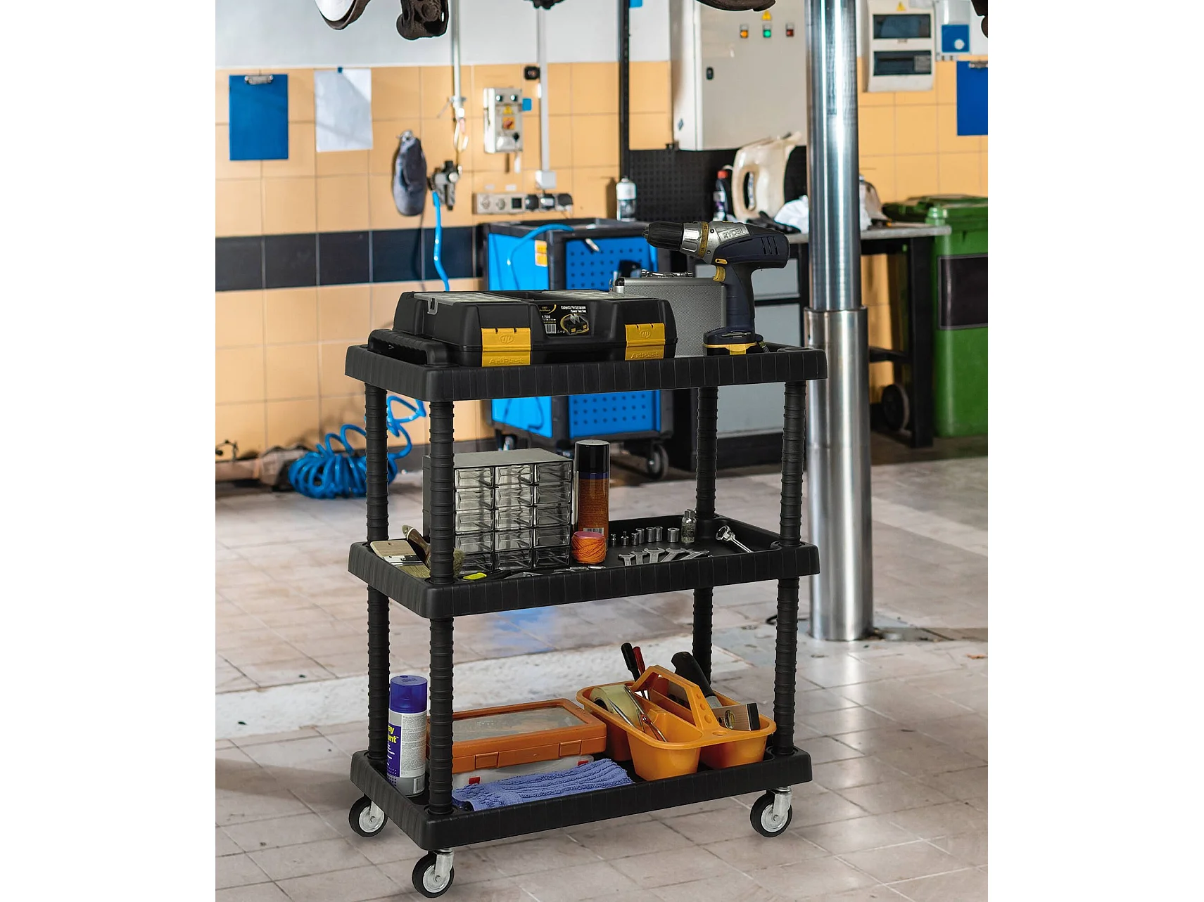 Dbagnolin-wagen, Multifunctionele wagen, wagen met wielen, gereedschapswagen met 1 plank, 100% Made in Italy, 75x38h92 cm, Antraciet