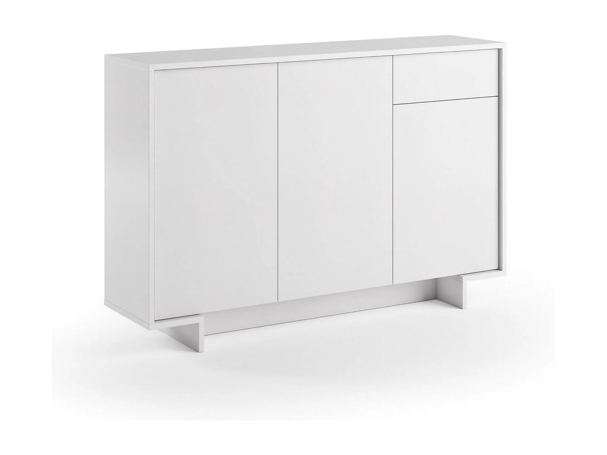 Dbakayok dressoir, Woonkamer, Woonkamerbuffet met 3 deuren en 1 lade, 100% Made in Italy, 134x35h87 cm, Wit