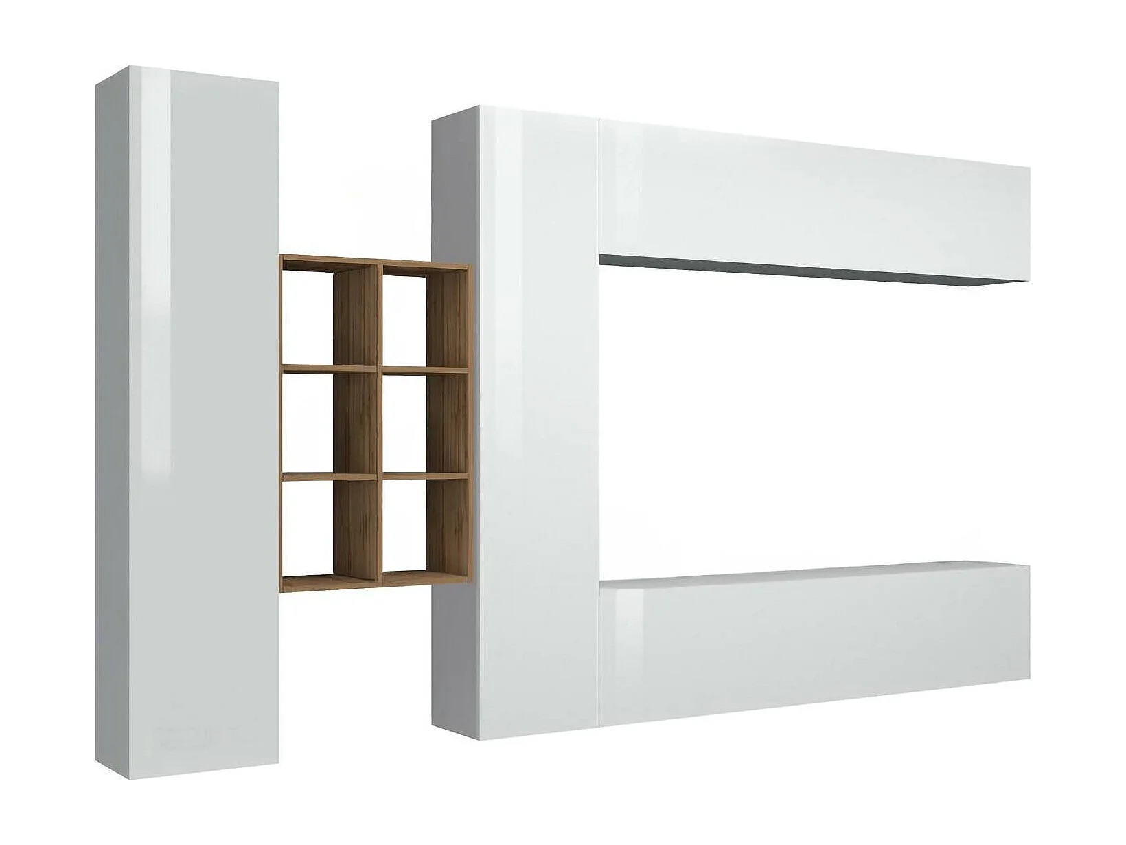 Dcaldar wandsysteem, 4-deurs TV-meubel woonkamerset, Multifunctioneel woonkamermeubilair, 100% Made in Italy, 280x30h180 cm, Glanzend wit en esdoorn