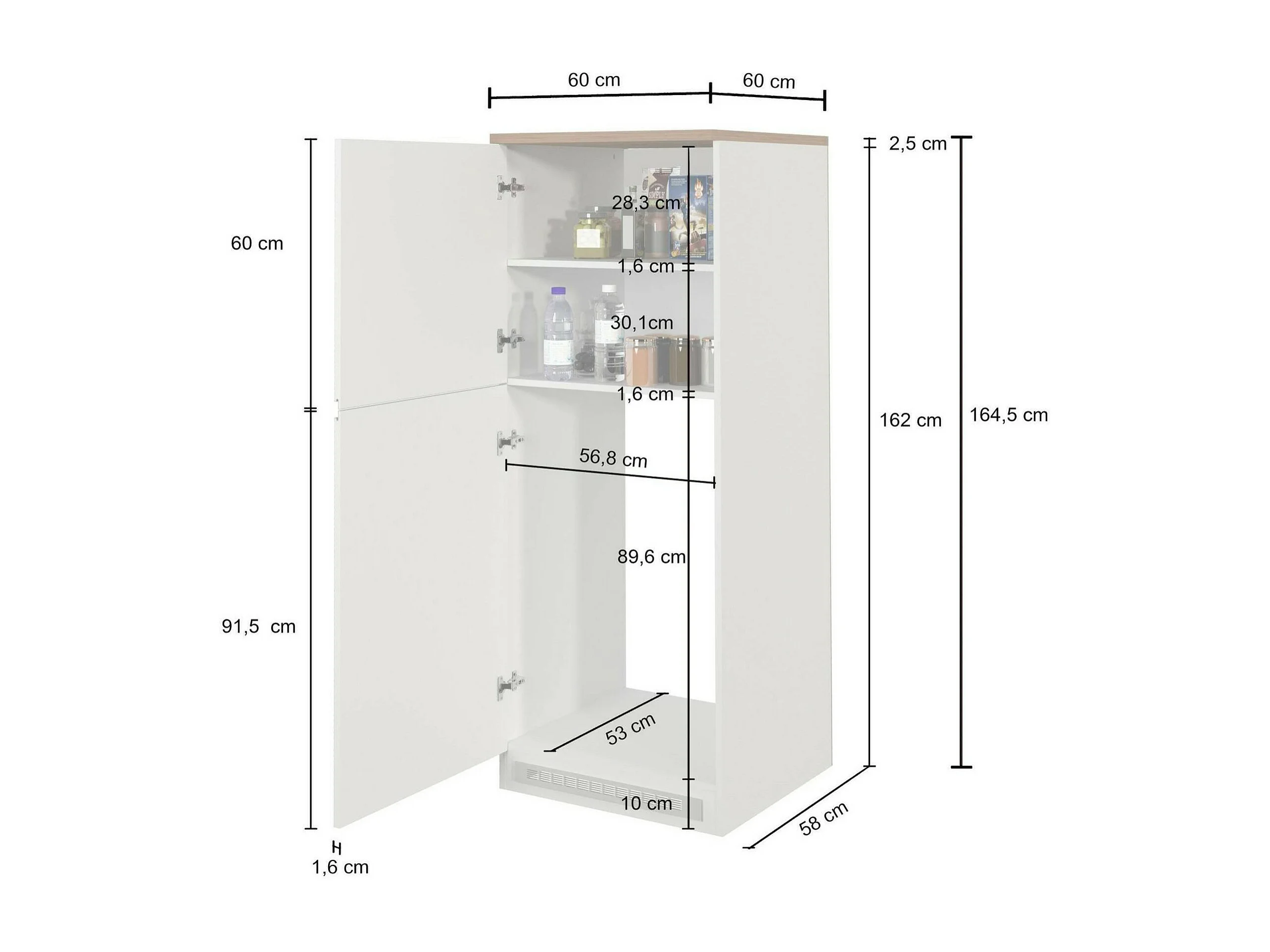 Dcasiragh keukenkast, Multifunctionele kledingkast, Keukenkast, Multifunctionele koelkasthouder, 100% Made in Italy, 30x60h165 cm, Glanzend wit en eiken