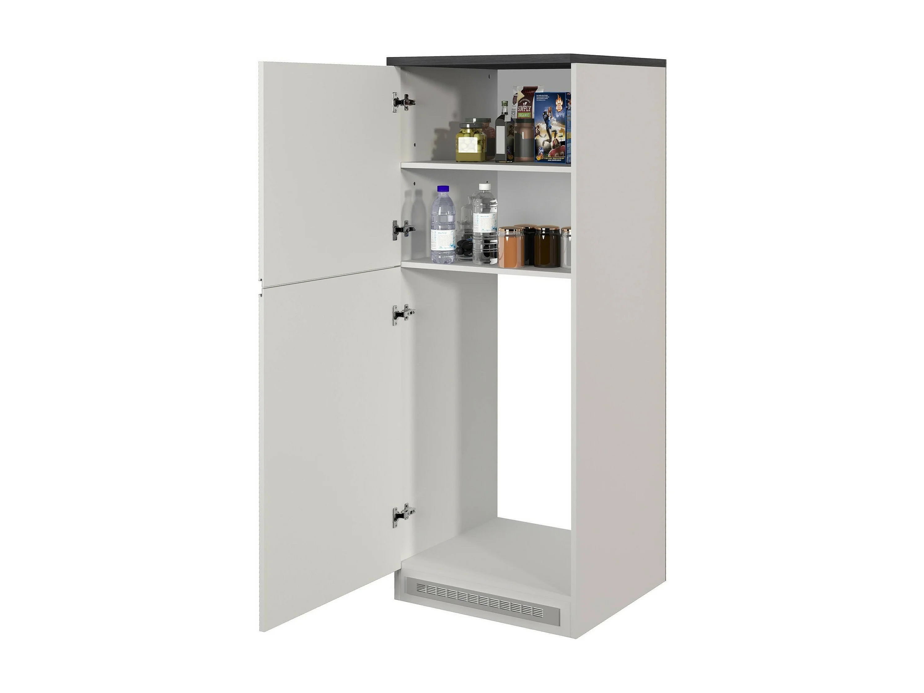 Dcasasol keukenkast, multifunctionele kledingkast, kitchenettemeubel, multifunctionele koelkasthouder, 100% Made in Italy, 60x60h165 cm, glanzend wit en leisteen