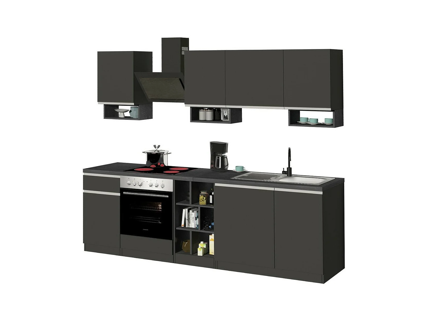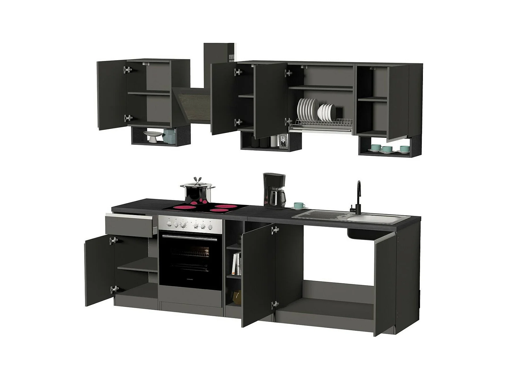Dceccaron complete keuken, Set met bijkeuken, Keukenkast, Lineaire blokkit, 100% Made in Italy, 255x60h85 cm, Antraciet en Leisteen