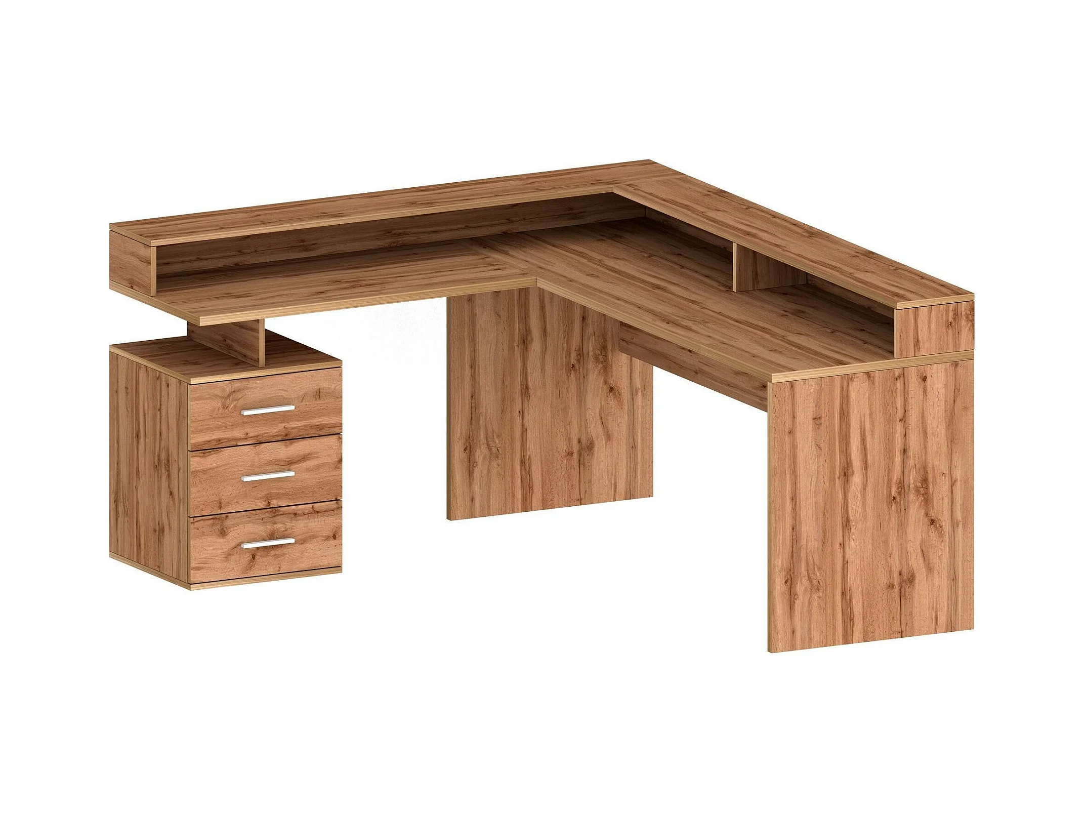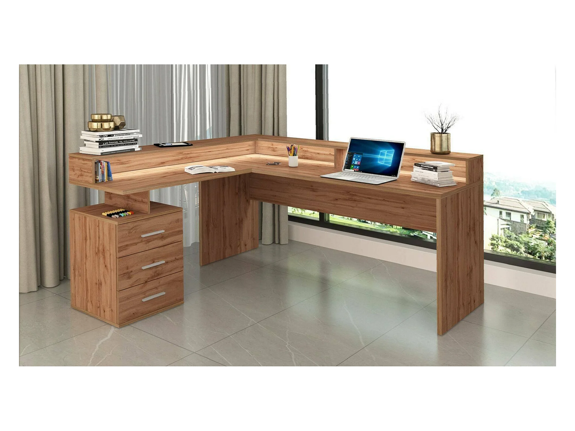 Dkea bureau, Multi-positie bureau voor kantoor of slaapkamer, Hoekstudeertafel met planken, 121x96h74 cm, Eiken