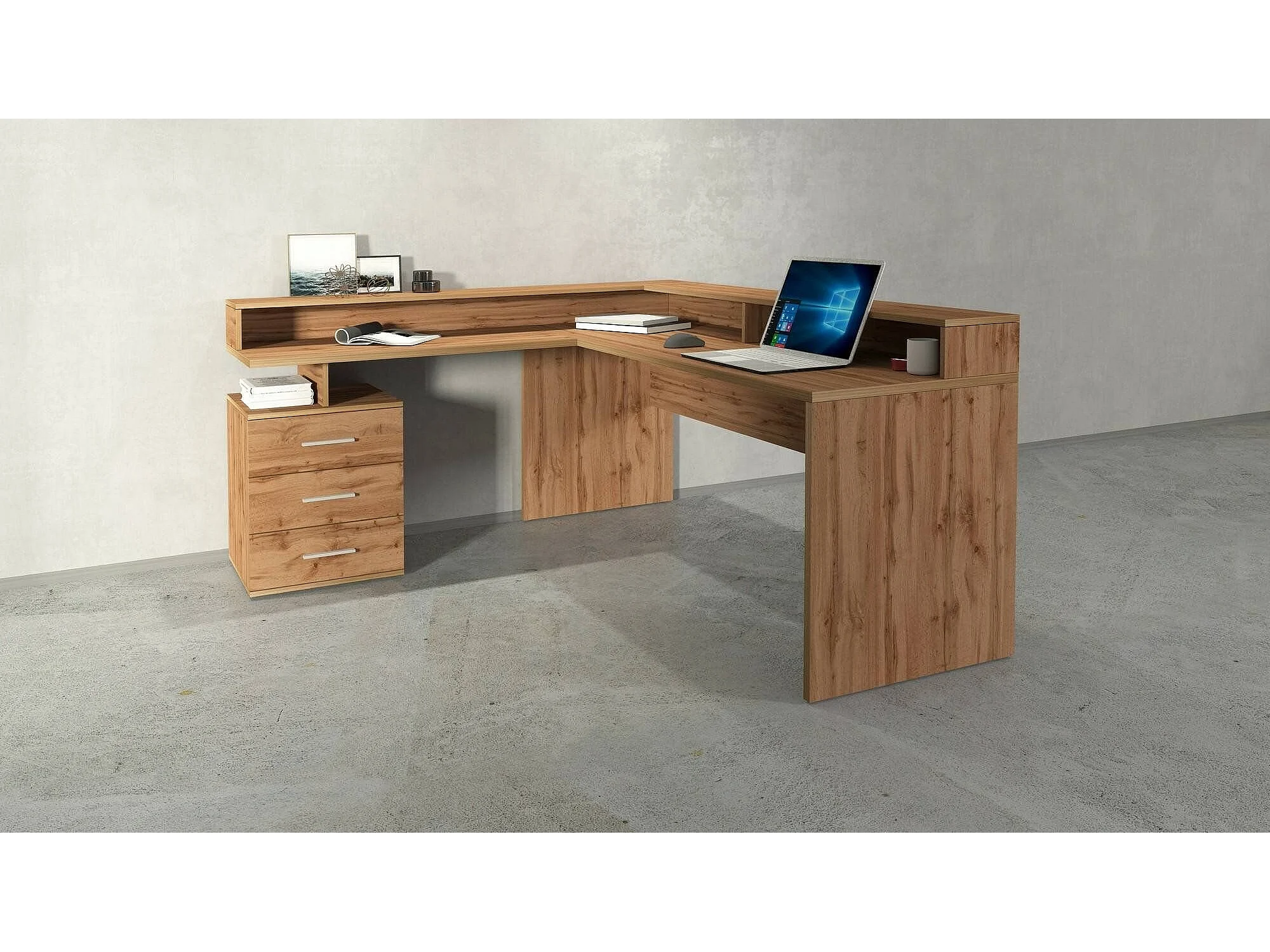 Dcerretell Bureau, Hoekbureau met Hendel, Multifunctioneel Bureau, 180x90h160 cm, Eiken