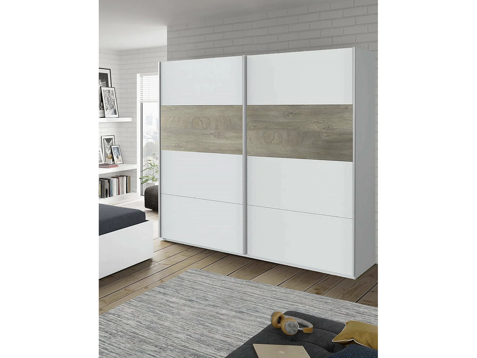 Dcioff kledingkast, slaapkamerkast met 2 schuifdeuren, kast met kledingroede en 3 planken, 180X60h200 cm, Wit en Eiken