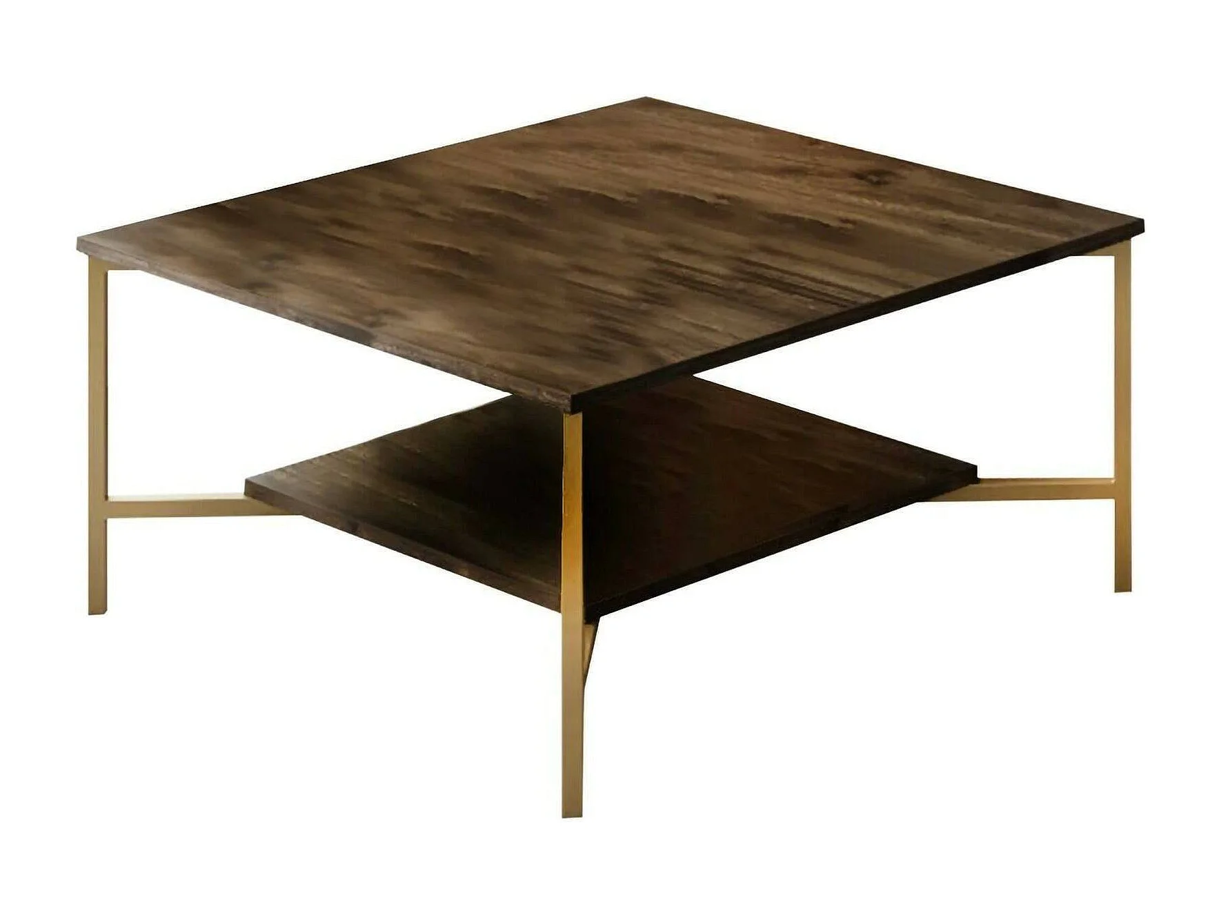 Declara Salontafel, Salontafel, Sofa Review Rack, Woonkamer Plank, 80x80h40 cm, Walnoot en Zwart