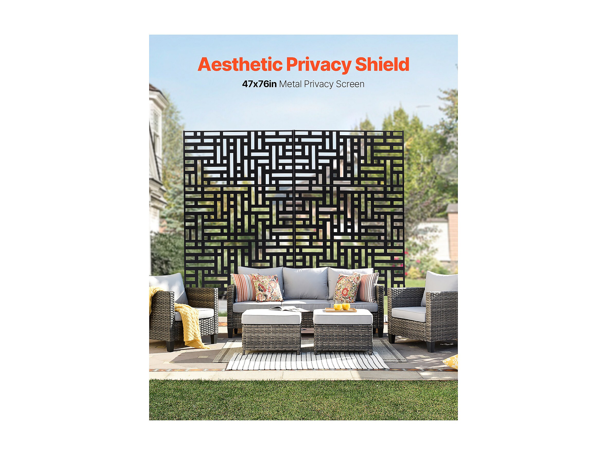 Decoratief Buitenpaneel, SucceBuy Metalen Privacyscherm, 120 x 193 cm, Buitenprivacypanelen, Zwart