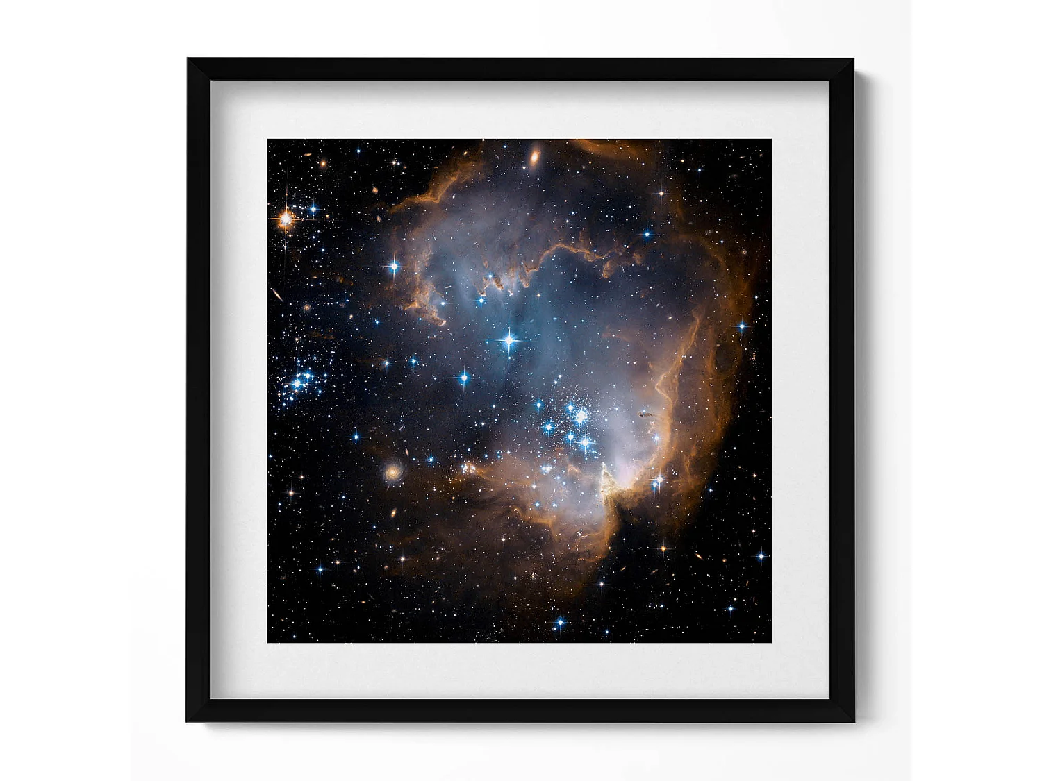 Decoratief schilderij met zwarte lijst, Boheemse zon en abstracte planten 50 x 50 cm - Perfect voor de woon- of slaapkamer