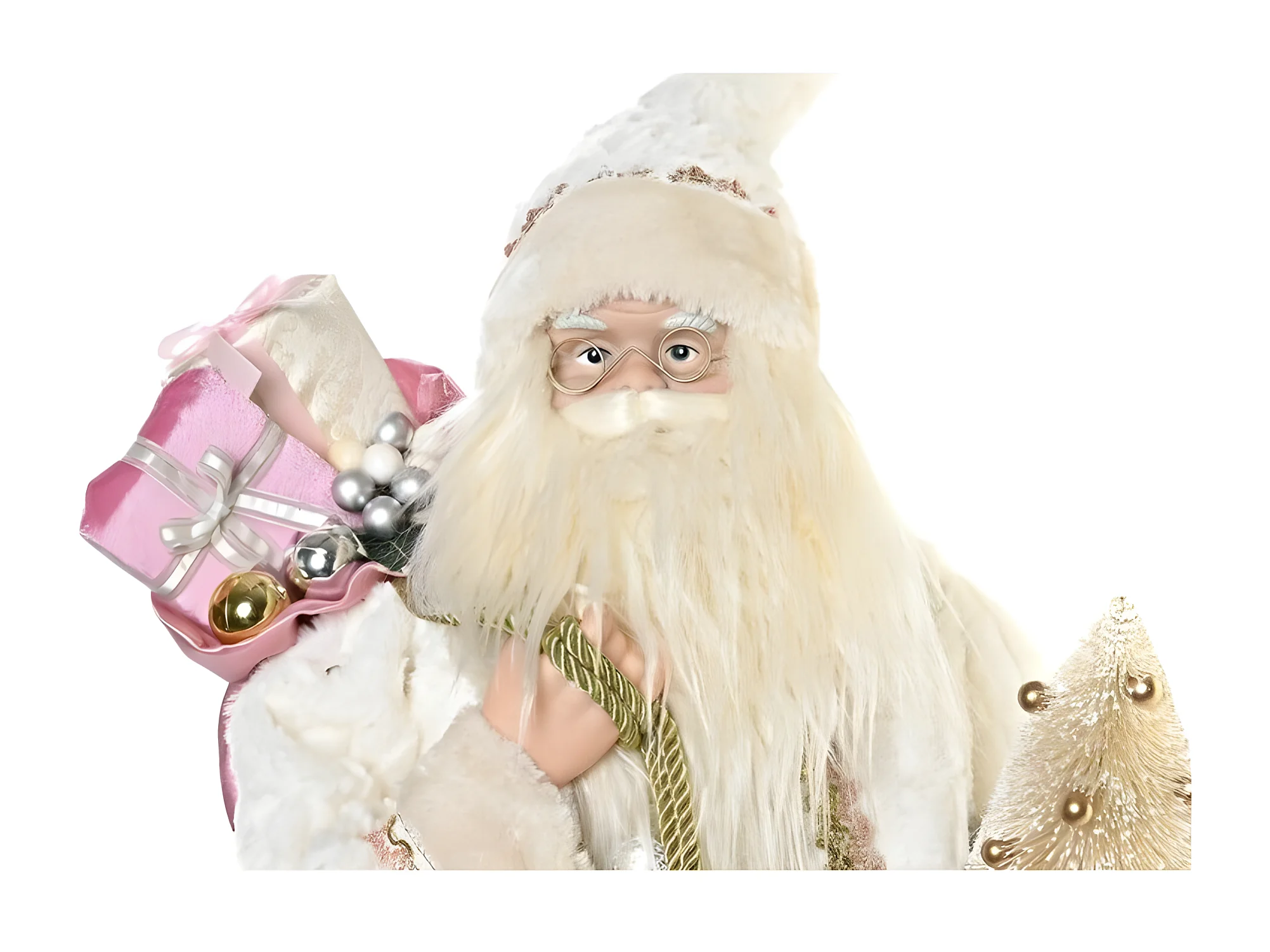 Decoratieve Kerstfiguur Kerstman Grijs Roze Hout 32x20x60cm