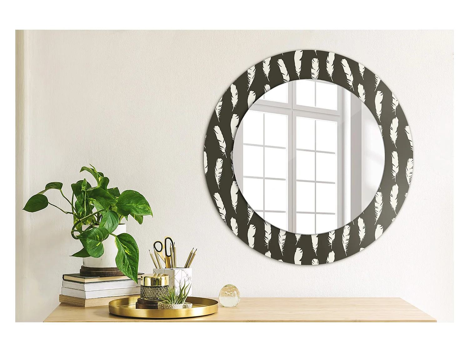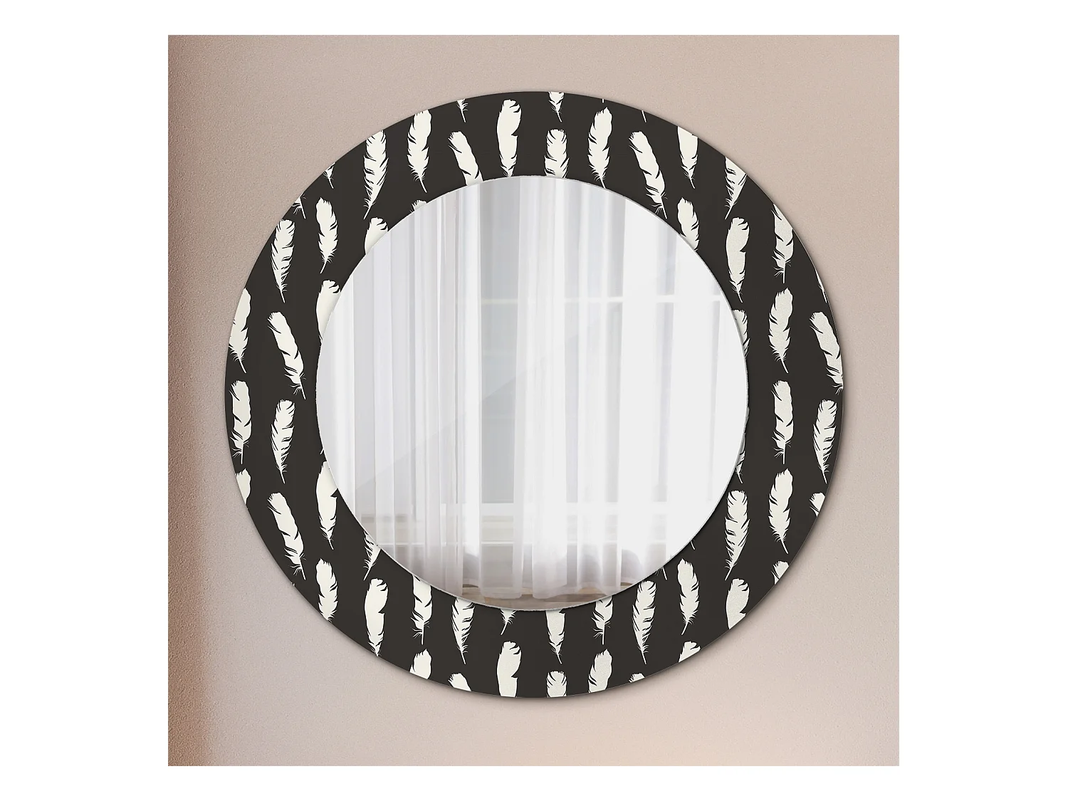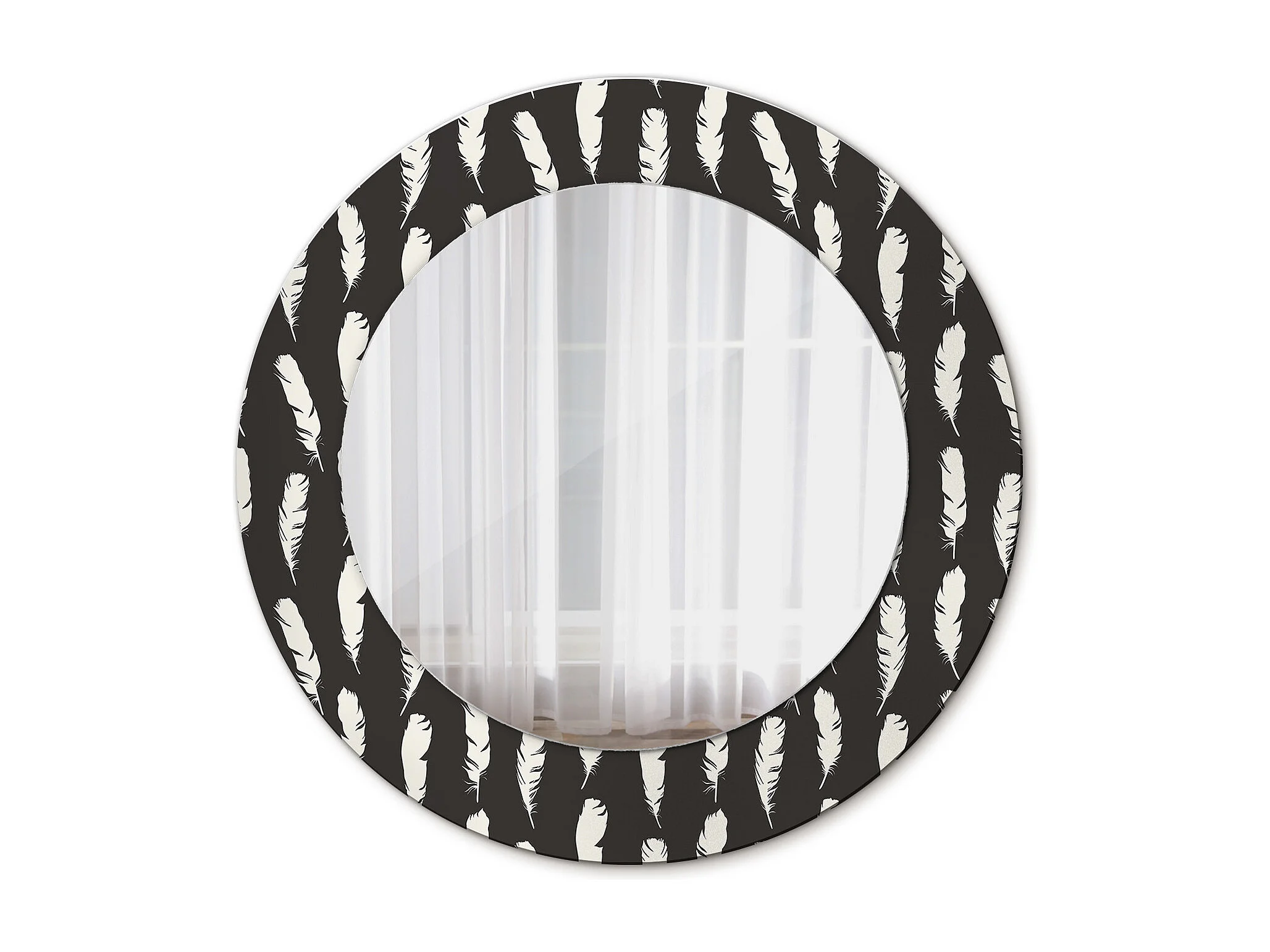 Decoratieve ronde spiegel - Zwart-witte veren - 50 cm