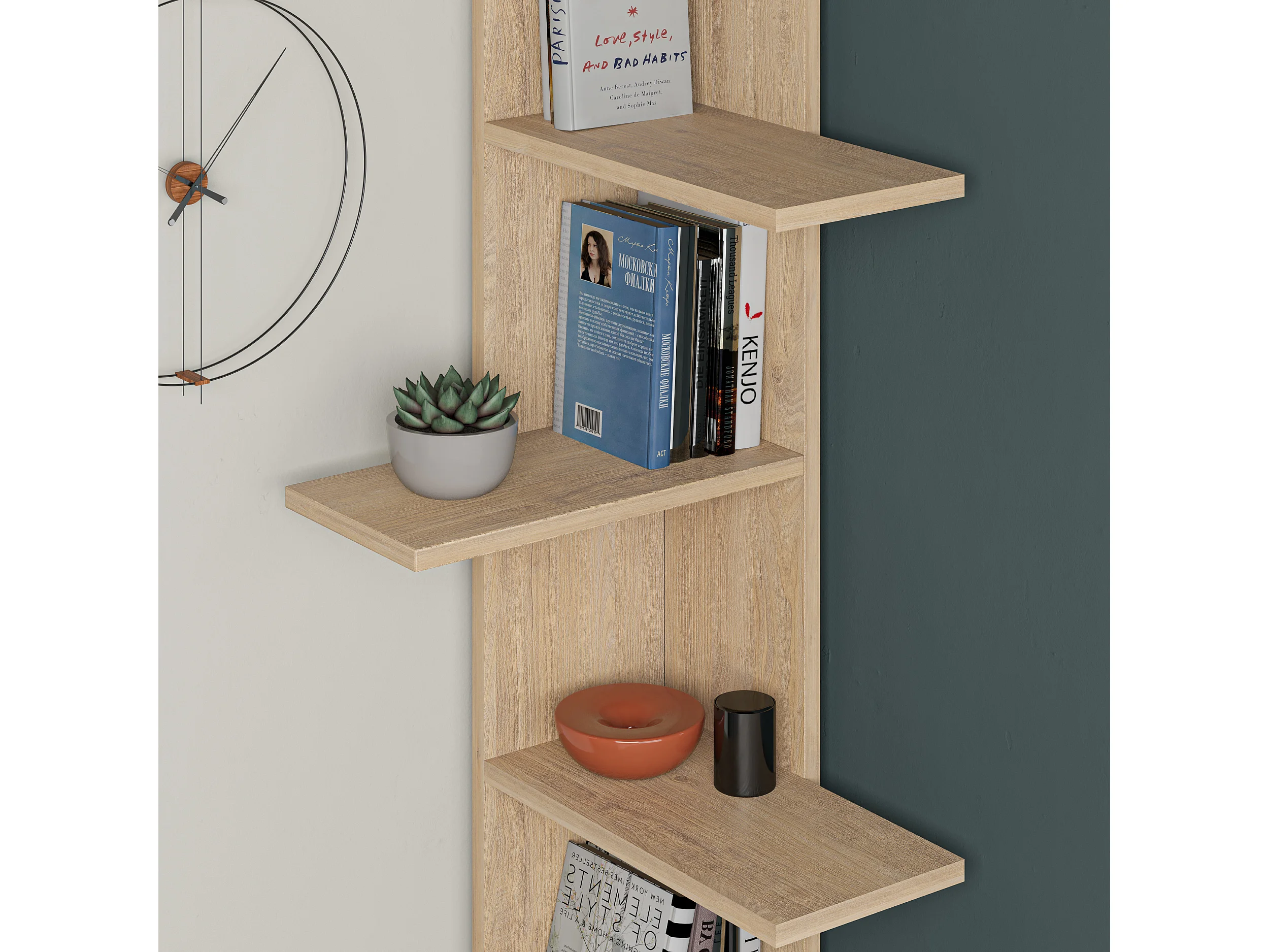 Decortie Eiken 24x37x141cm Hoekboekenkast met 5-laags Spaanplaat Weergave-eenheid Saso