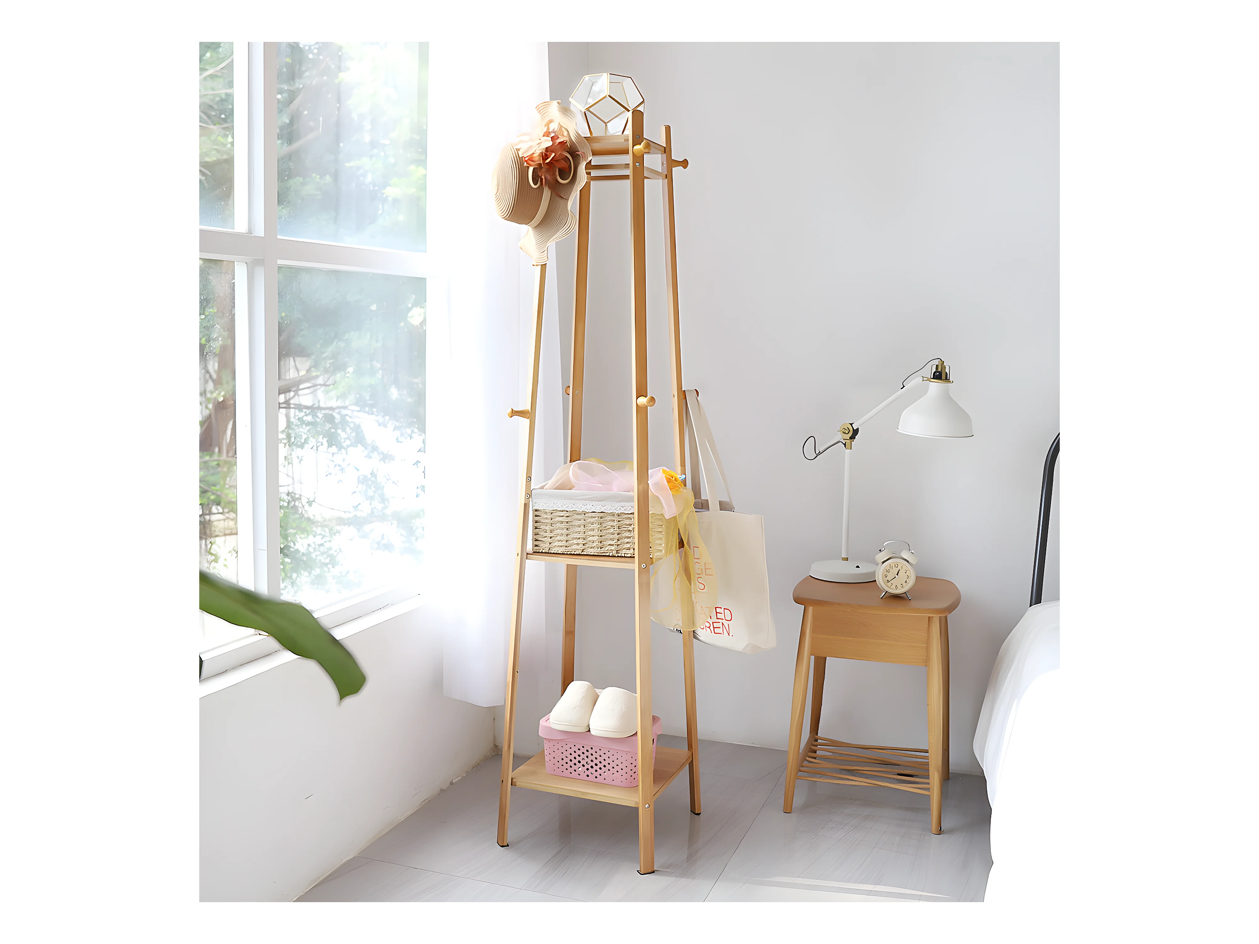 Bamboe kapstok met 8 haken, natuurlijk en functioneel design, naturel (49,5x49,5x178cm)