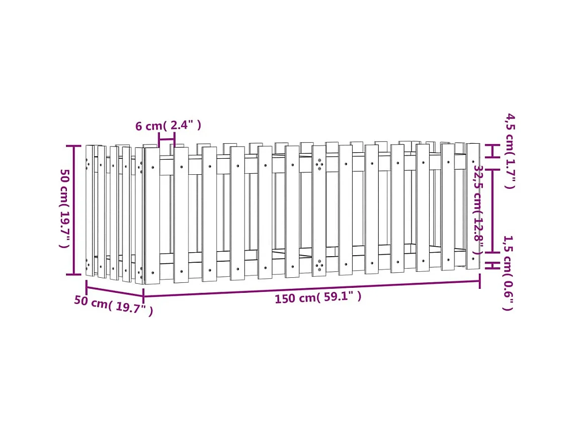 Designer verhoogde tuinbak met omheining 100x50x50cm massief grenen
