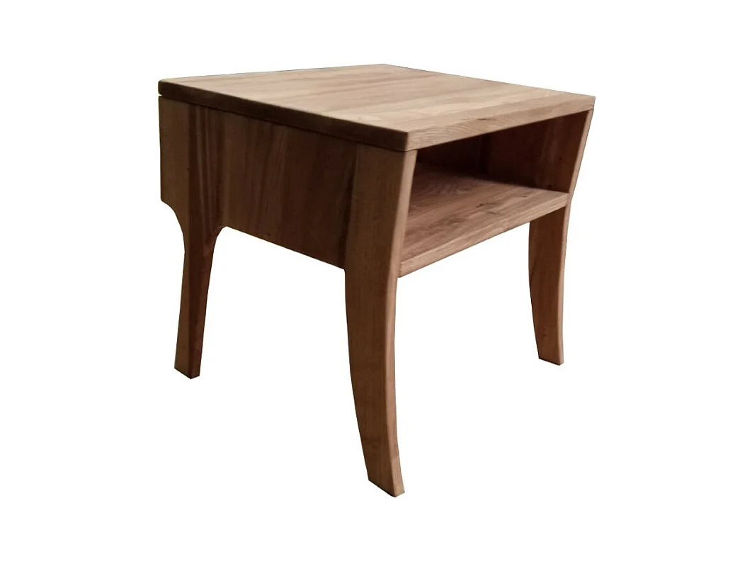 Artisan Furniture Massief Houten Mini Eiken-achtige Gebogen Bedtafel met Open Ontwerp, Slaapkamer Nachtkastje