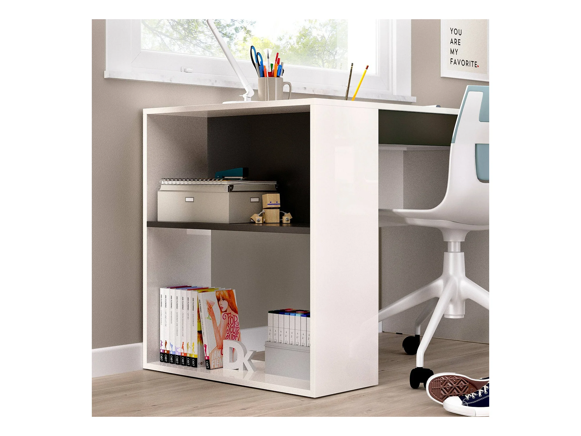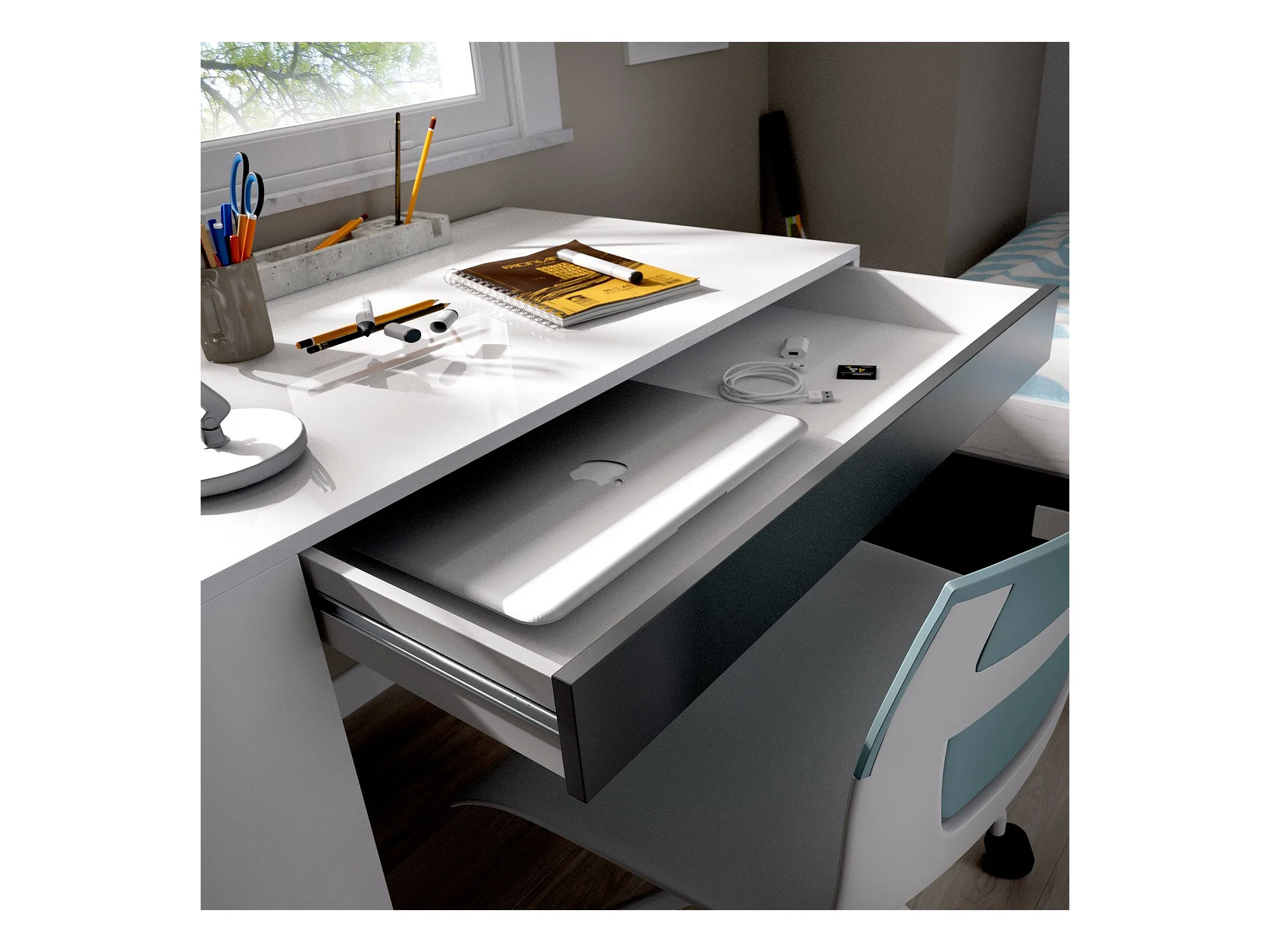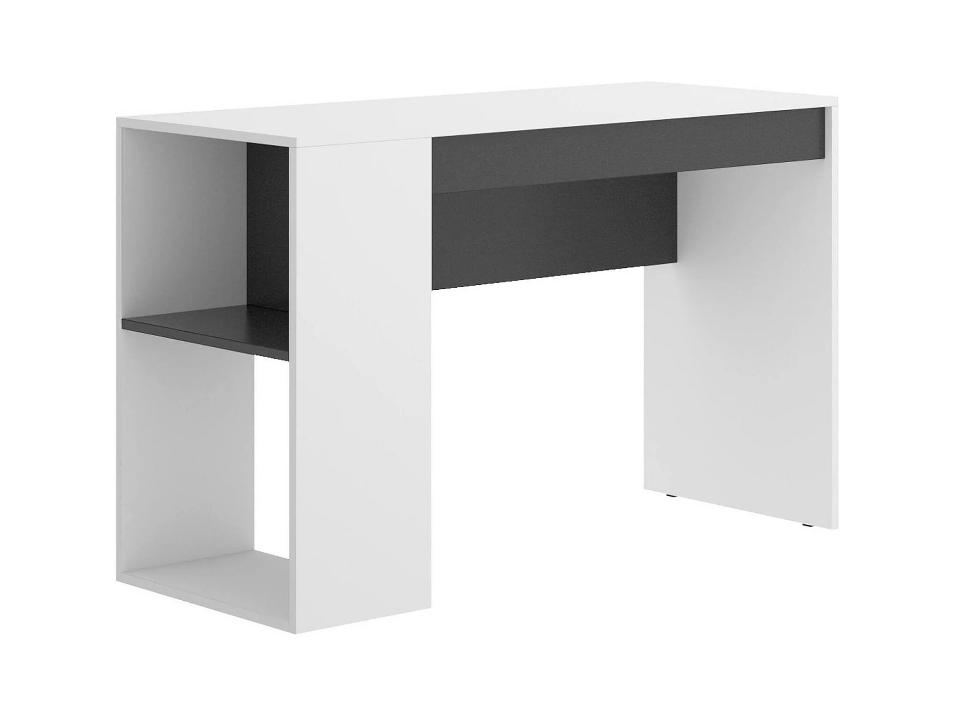 Dfalc Bureau, Multifunctioneel bureau voor kantoor of slaapkamer, Lineaire studeertafel met planken, 115x50h74 cm, Wit en Antraciet