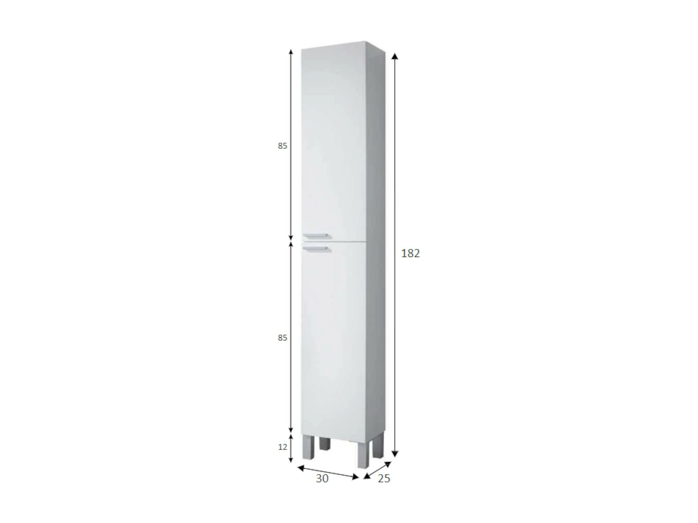 Dfaropp badkamerkolom, Badkamerkolomkast met 2 deuren, Hangkast met 2 planken, 30x25h182 cm, Glanzend wit