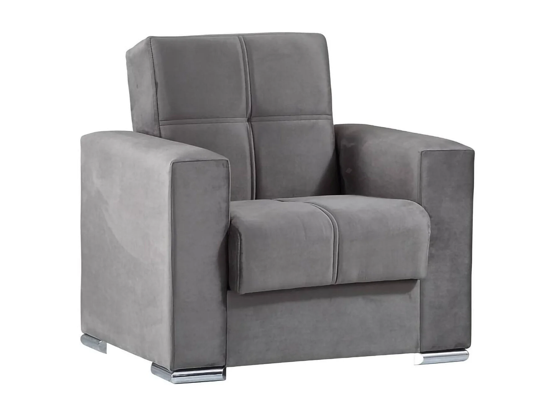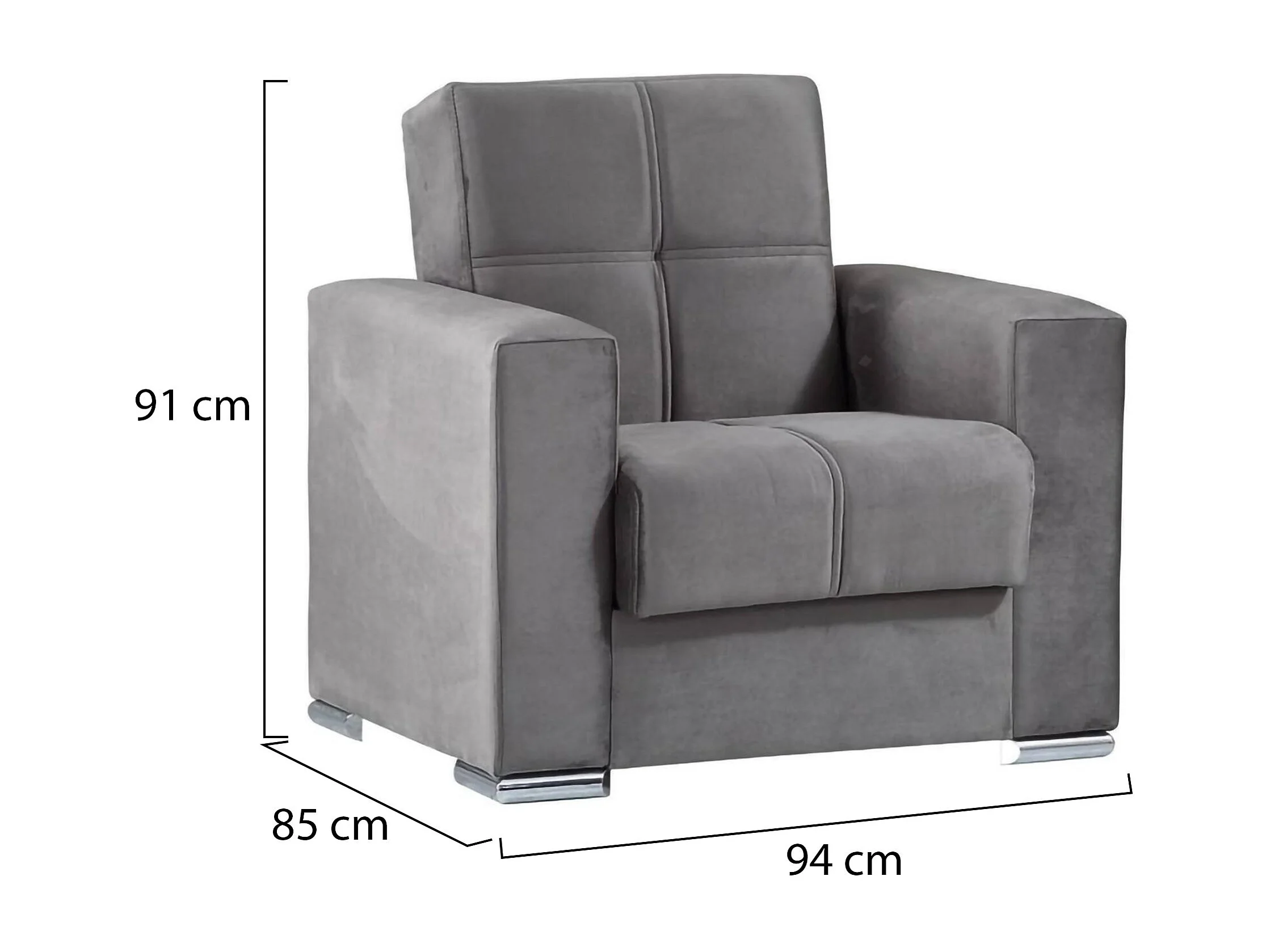 Dfot slaapbank, Woonkameropbergfauteuil om te bouwen tot bed, Ontspannende fauteuil in gewatteerde stof met klik-klakopening, 94x85h91 cm, Grijs