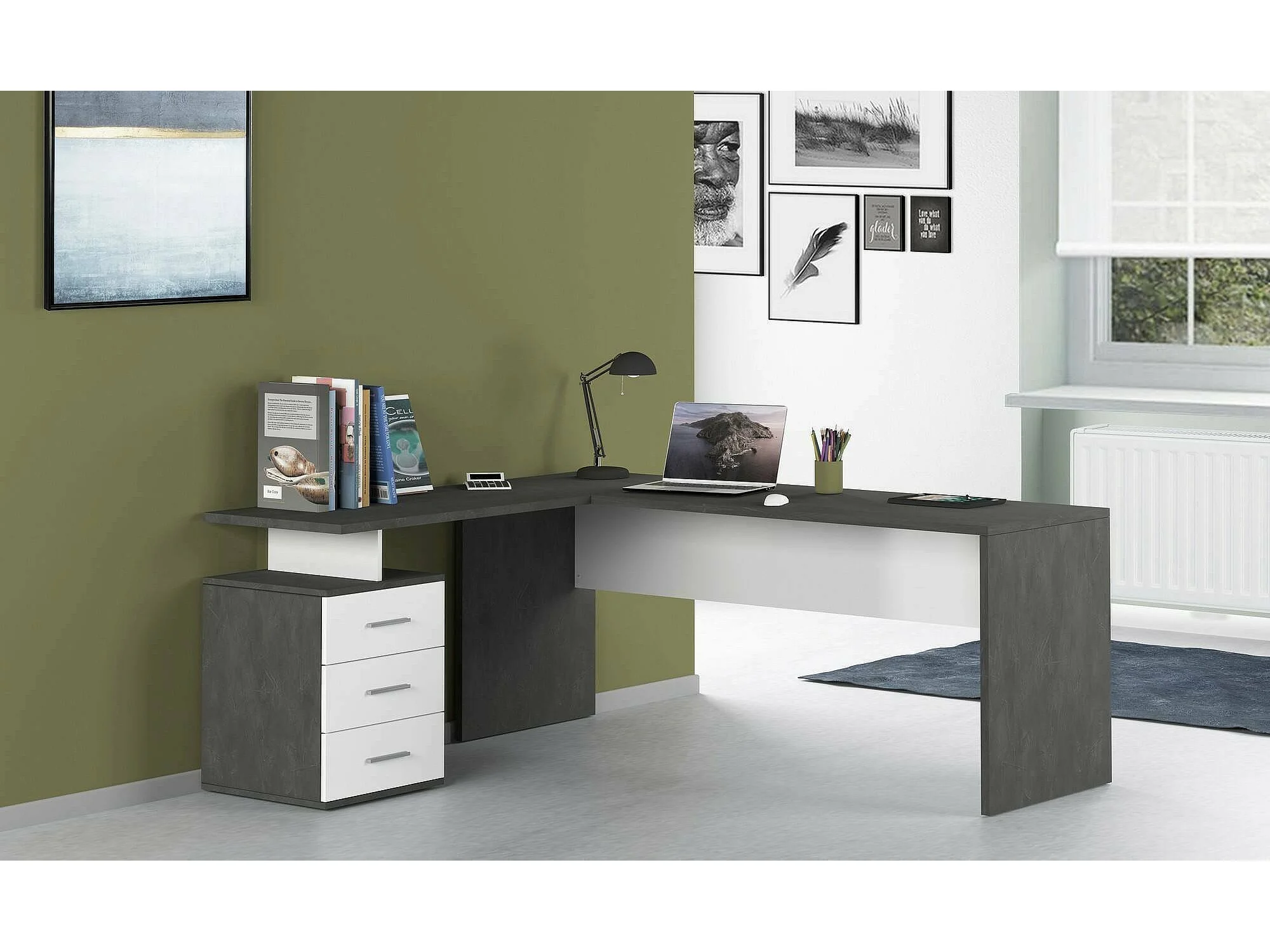SCHREIBTISCH Schiefer, Weiß glänzend 60/180/75 cm