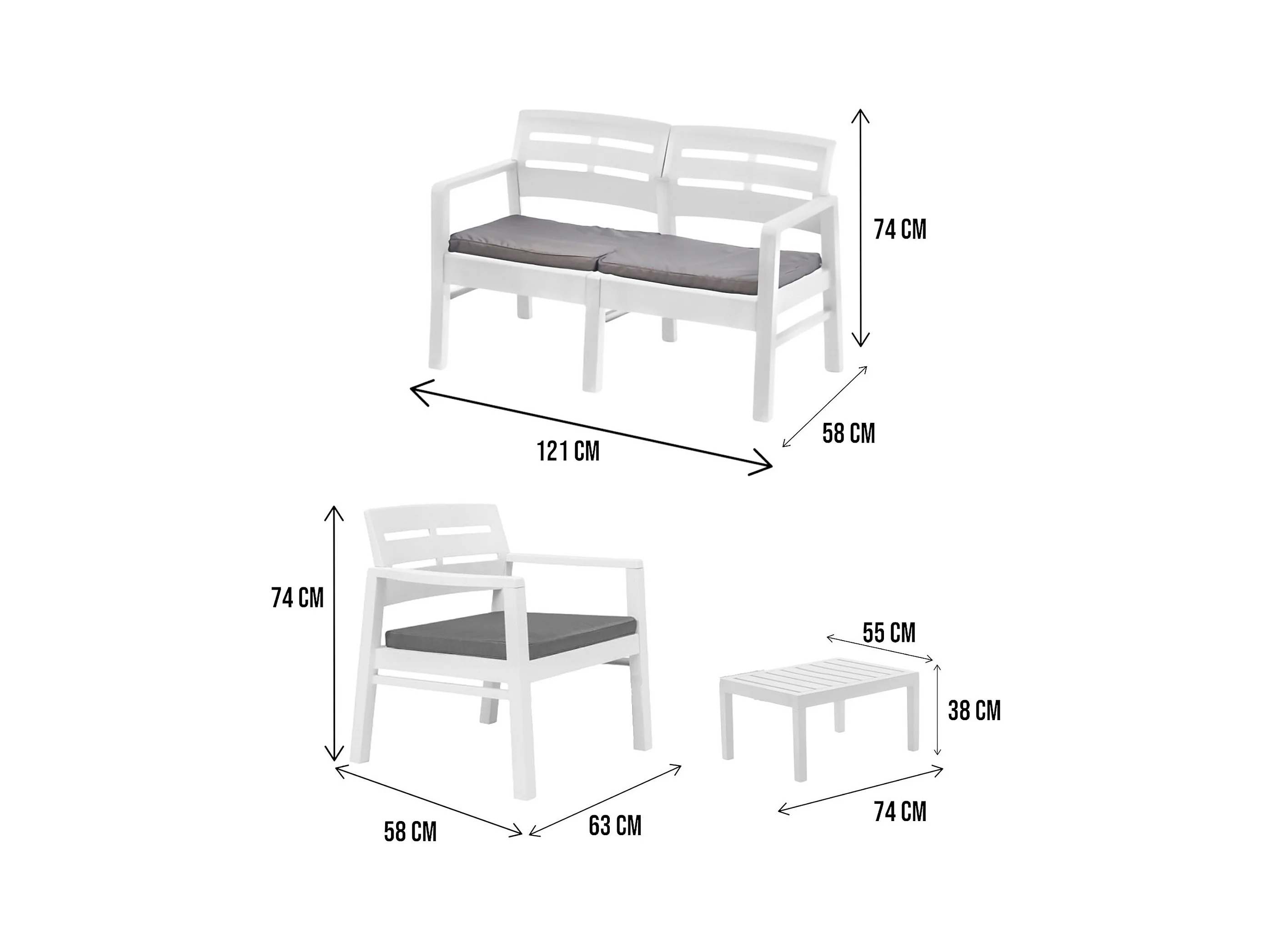 Dgyas outdoor loungeset, Tuinset met 2 fauteuils, 1 bank en 1 salontafel, Binnen- en buitenlounge met kussens, 100% Made in Italy, Wit