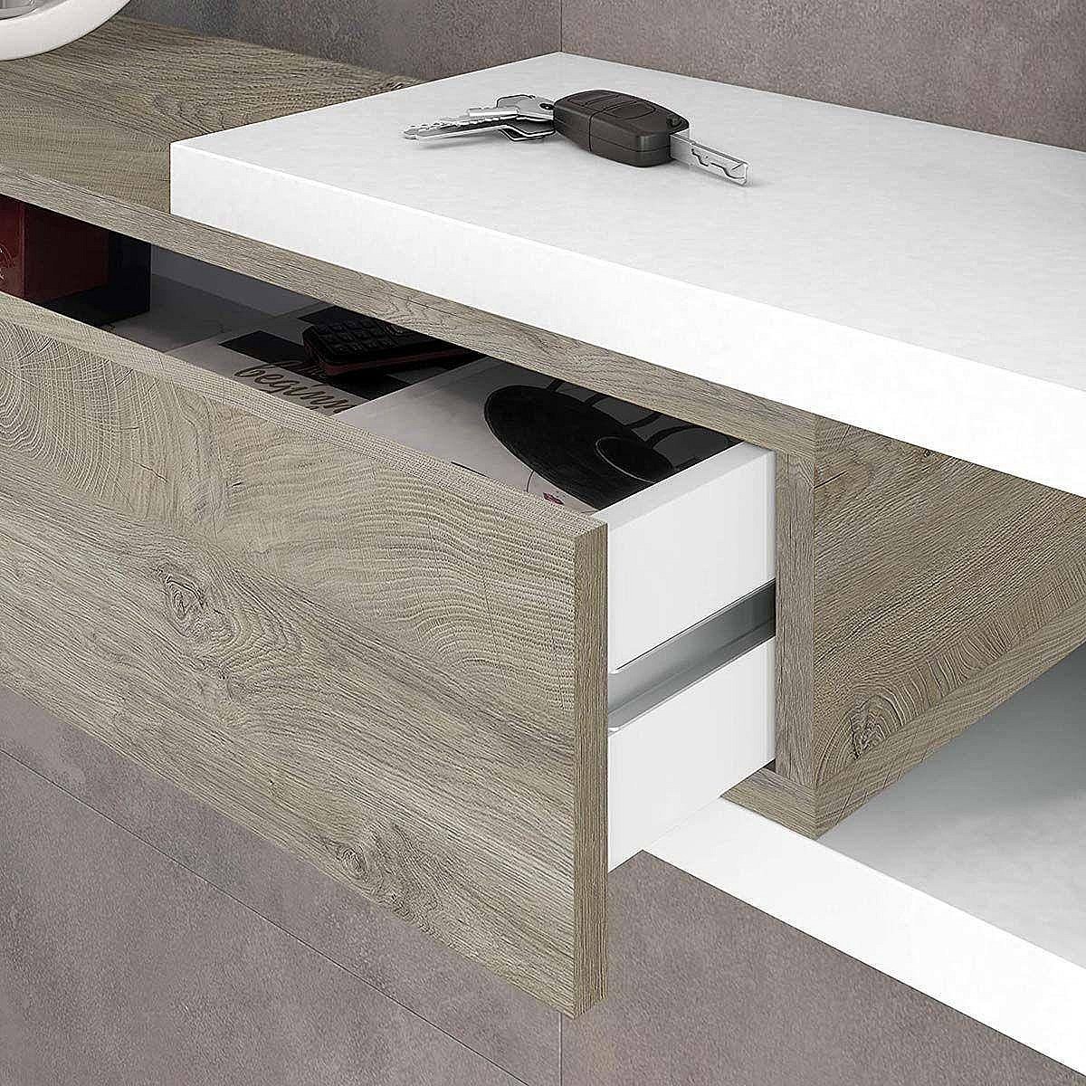 Dhasi entreemeubilair, Omkeerbare entree met spiegel, Halmeubel met lade, Zakblad voor appartementen, 95x26h69 cm, Wit en Eiken