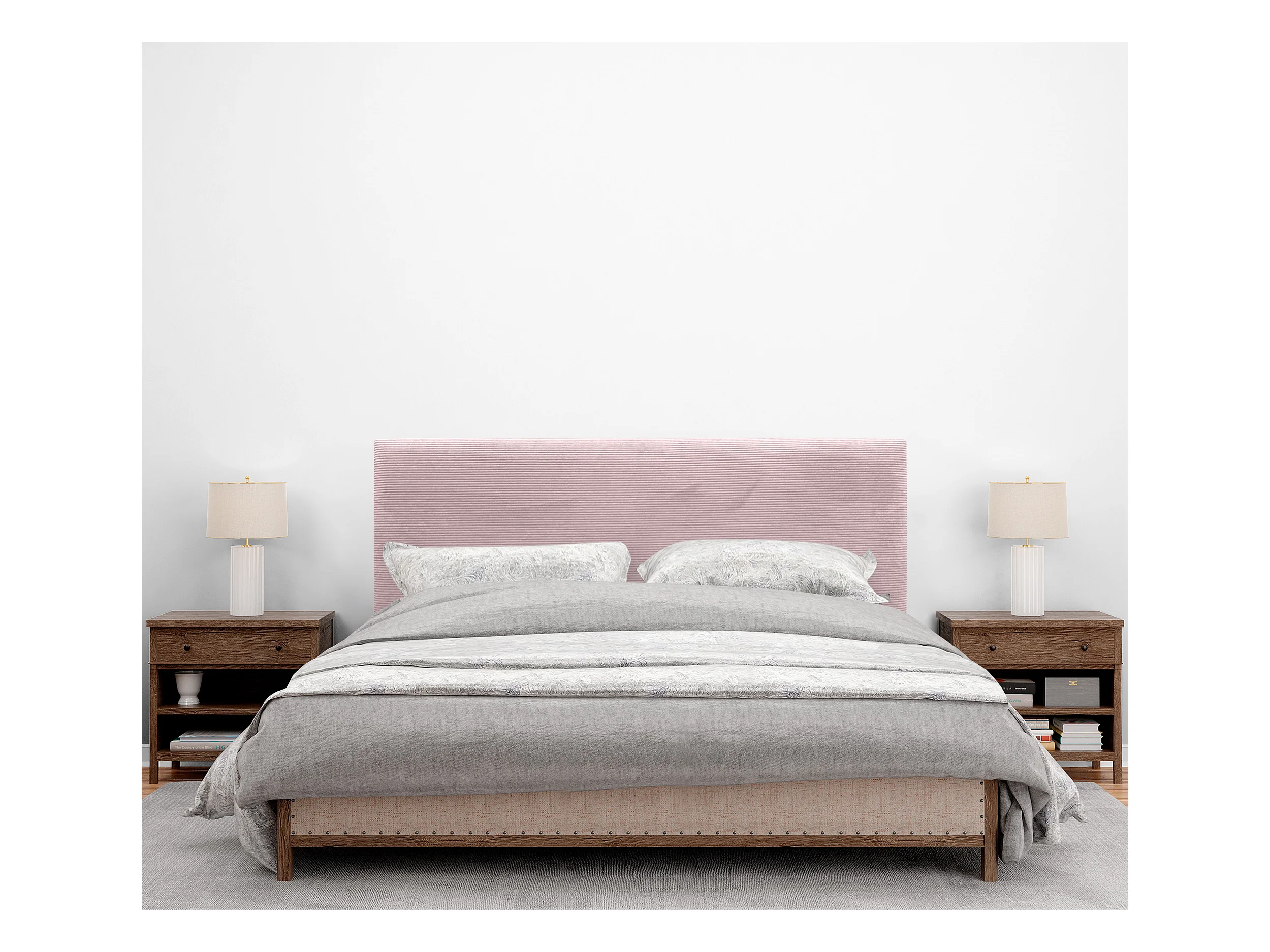 DHOME Effen Corduroy Hoofdbord 145x105 met Bedpoten 120/135/140 - Lichtroze