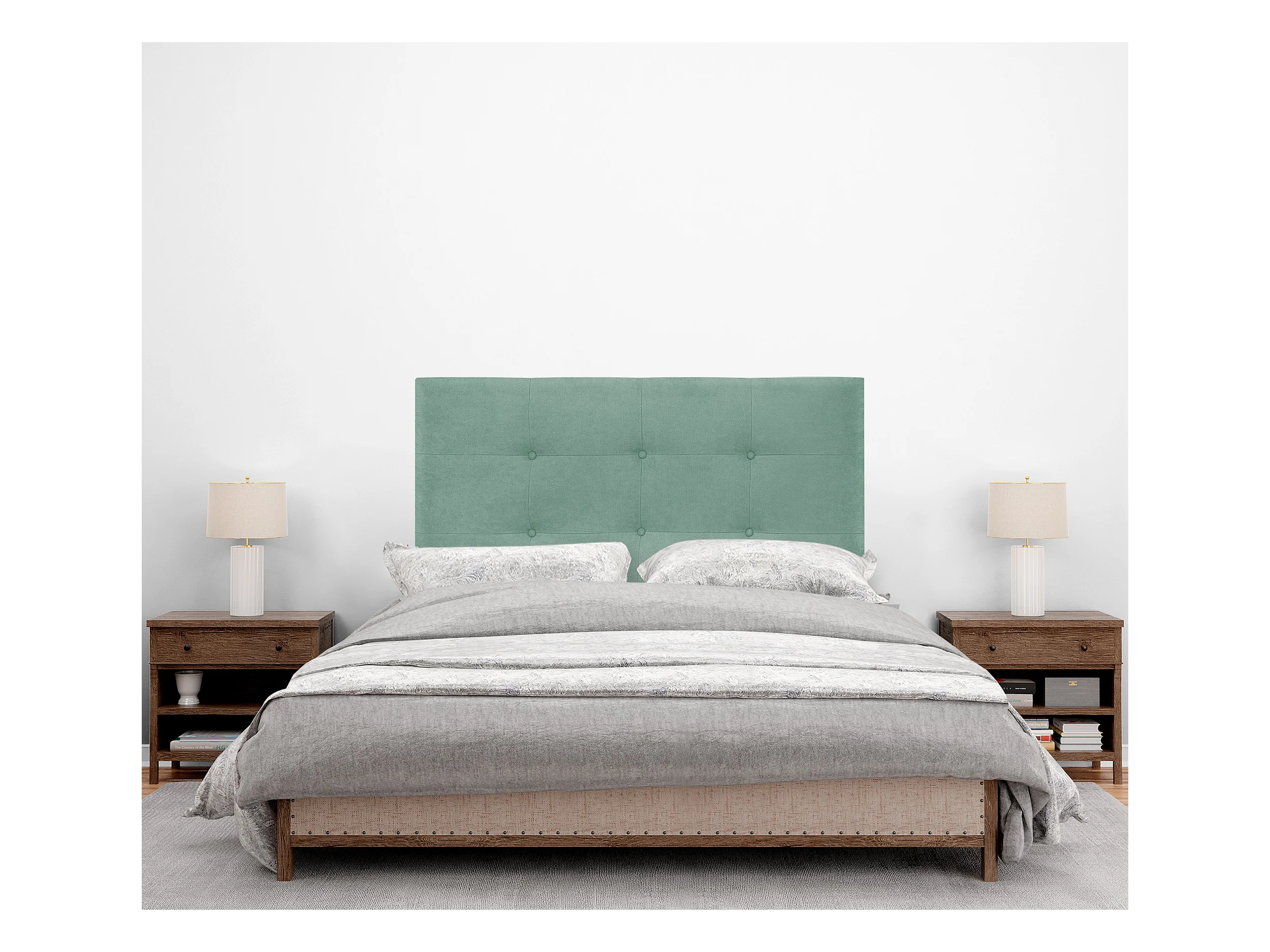 DHOME Gestoffeerd hoofdbord Aqualine met capitonnering 105x115cm met bedpoten Bedden 105 - Zeegroen