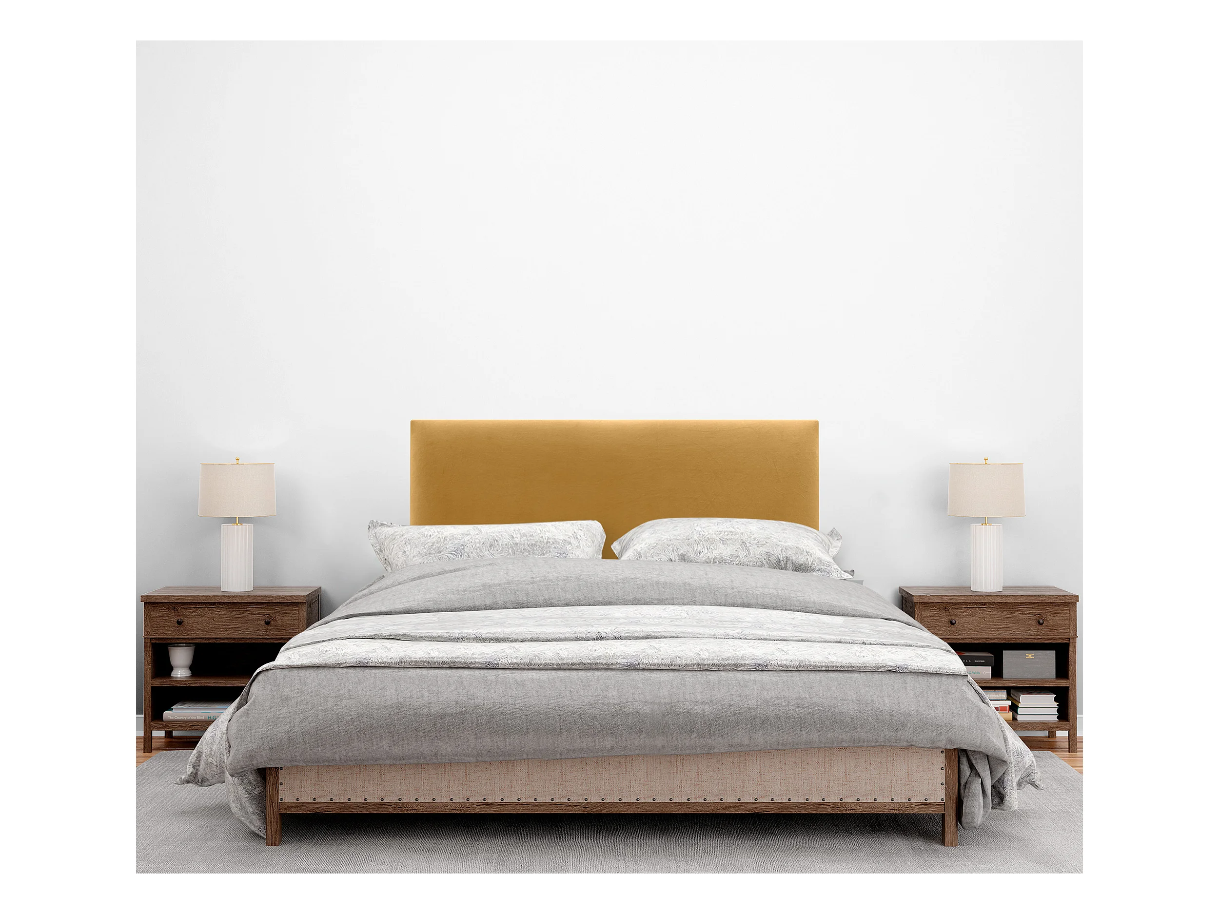 DHOME Glad fluwelen hoofdbord 110x115 met bedpoten 105 - Mosterd