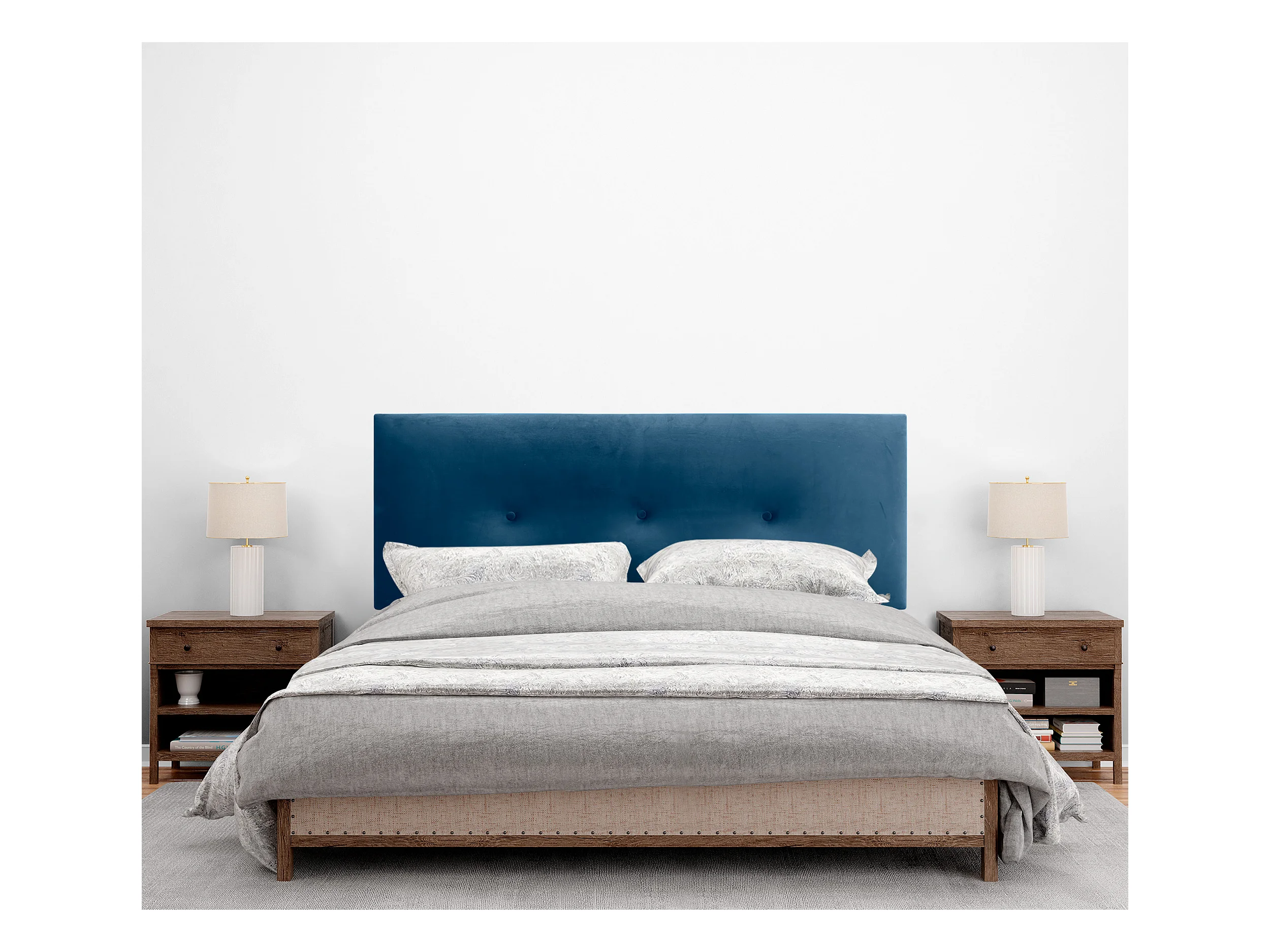 DHOME Glad fluwelen hoofdbord met knopen 145x105 met bedpoten 120/135/140 - Blauw