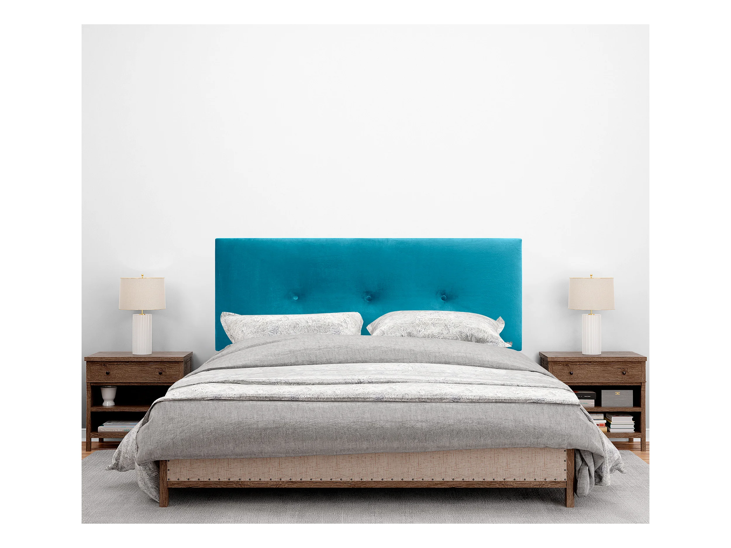 DHOME Glad fluwelen hoofdbord met knopen 145x115 met bedpoten 120/135/140 - Lichtblauw