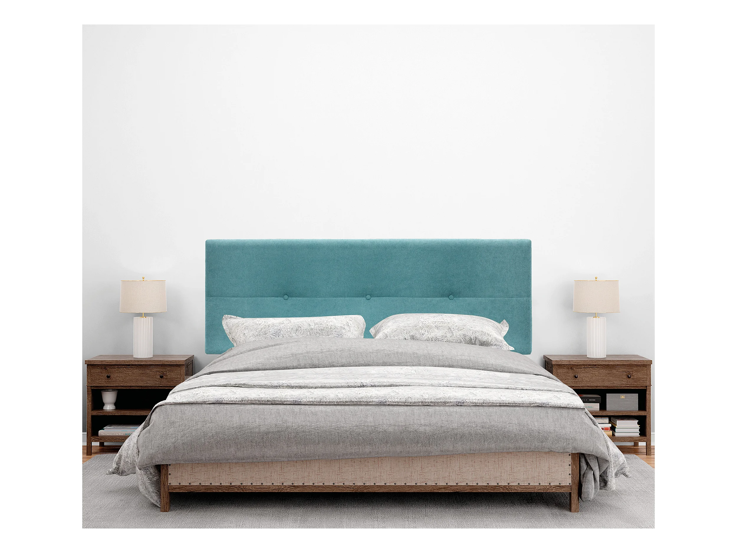 DHOME Hoofdeinde van Aqualine stof met knopen 150x105cm met bedpoten Bedden 150 - Turkoois