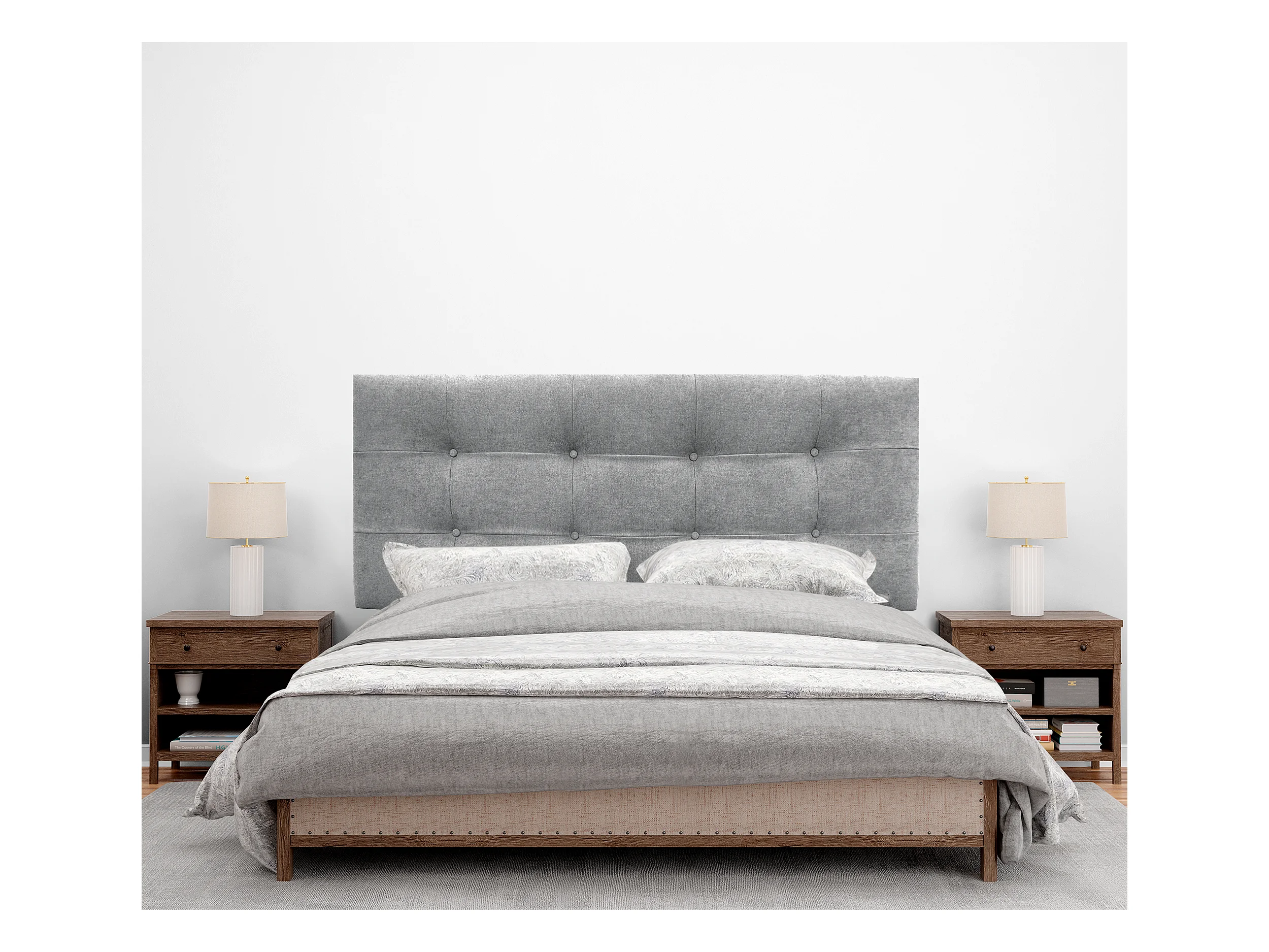 DHOME Hoofdeinde van Stof Aqualine Gecapitonneerd 145x115cm met Poten Bedden 135/140 - Grijs
