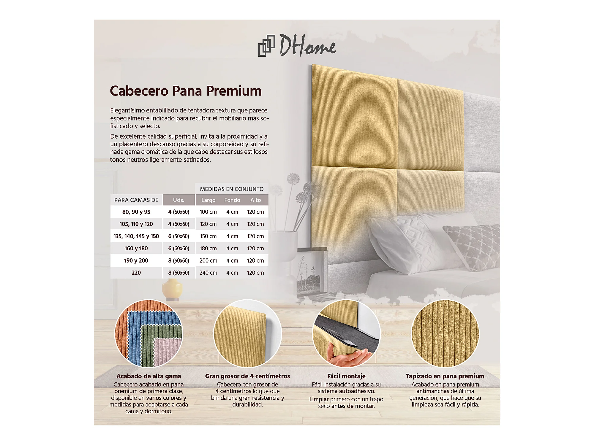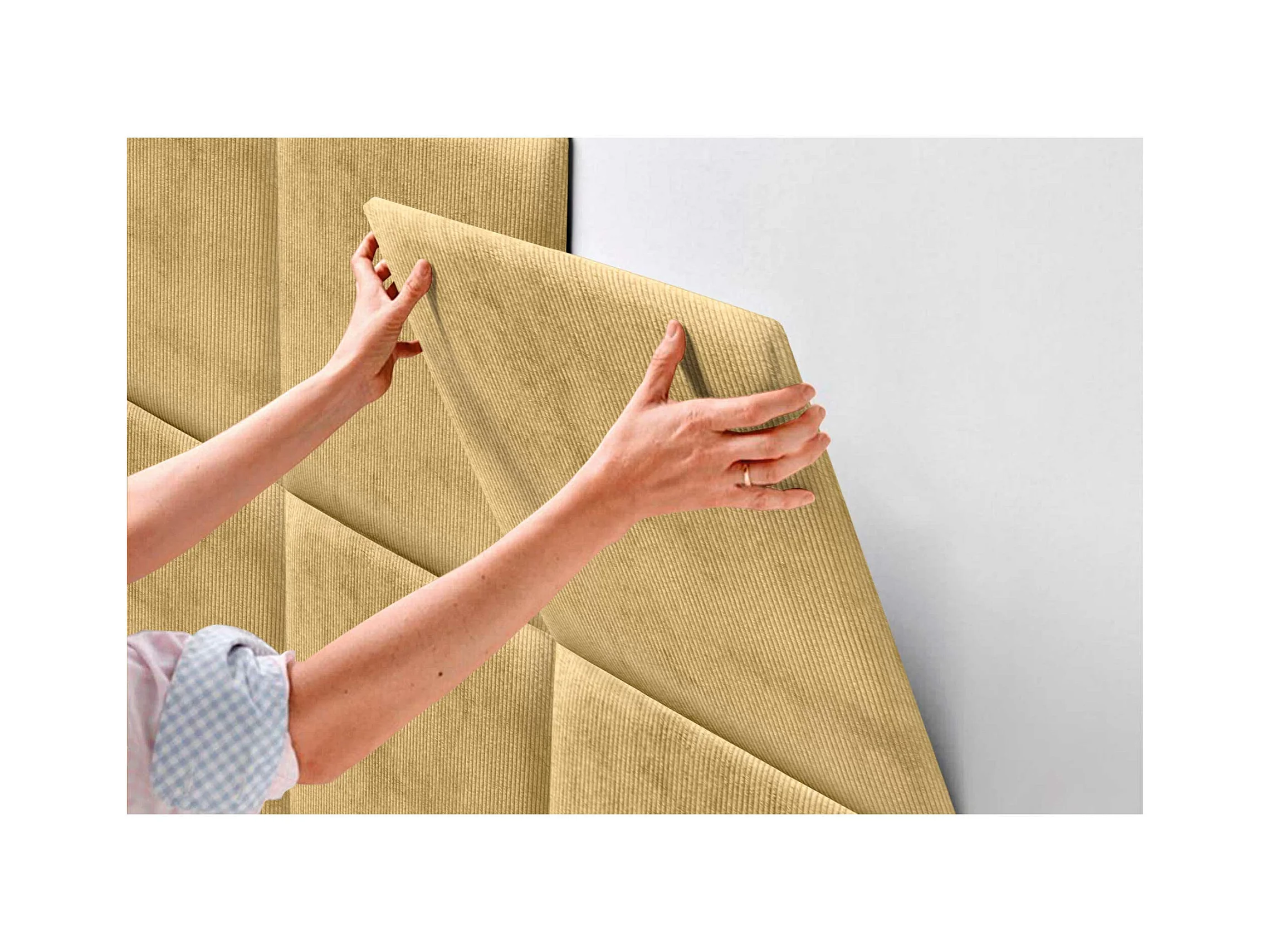 DHOME Premium Corduroy gestoffeerd hoofdeinde samengesteld uit verwisselbare zelfklevende panelen Luxe slaapkamer gewatteerd (mosterd, 140 cm)