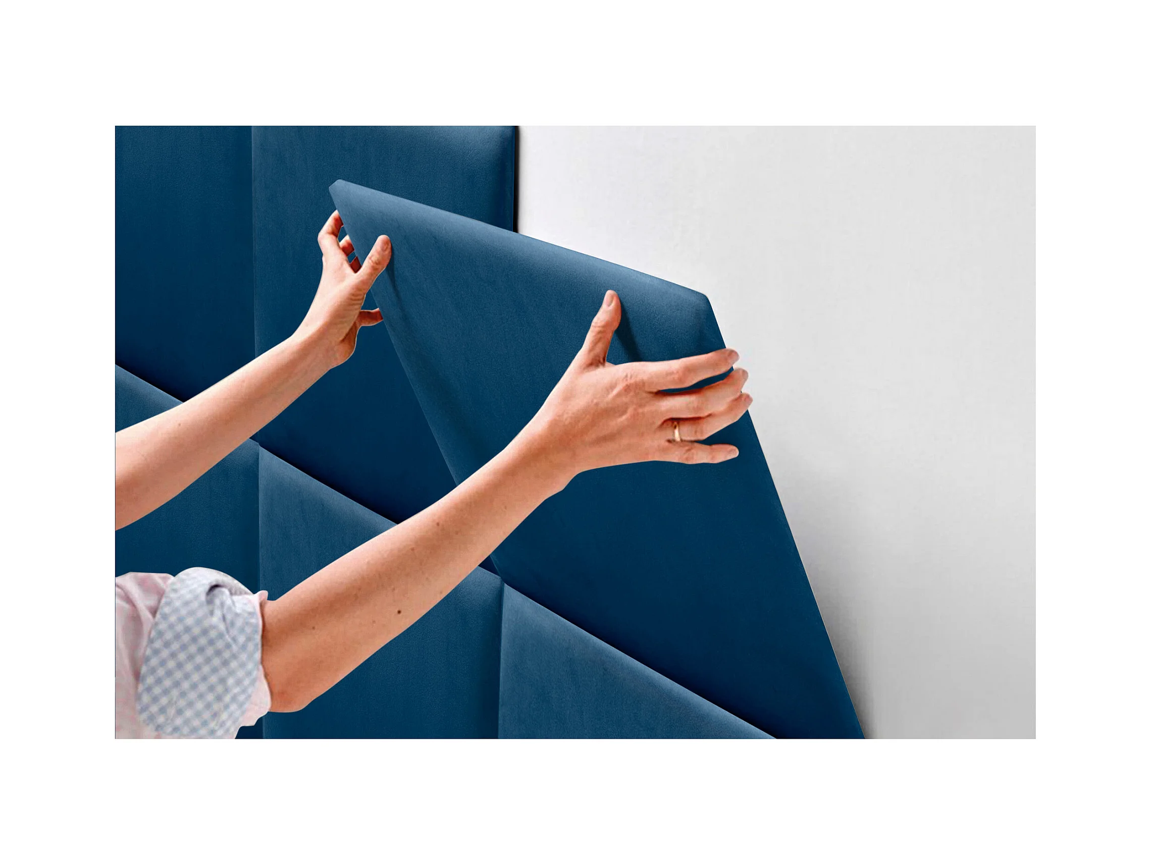 DHOME Premium fluwelen gestoffeerd hoofdeinde samengesteld uit verwisselbare zelfklevende panelen Luxe slaapkamer opgevuld (blauw, 180cm)