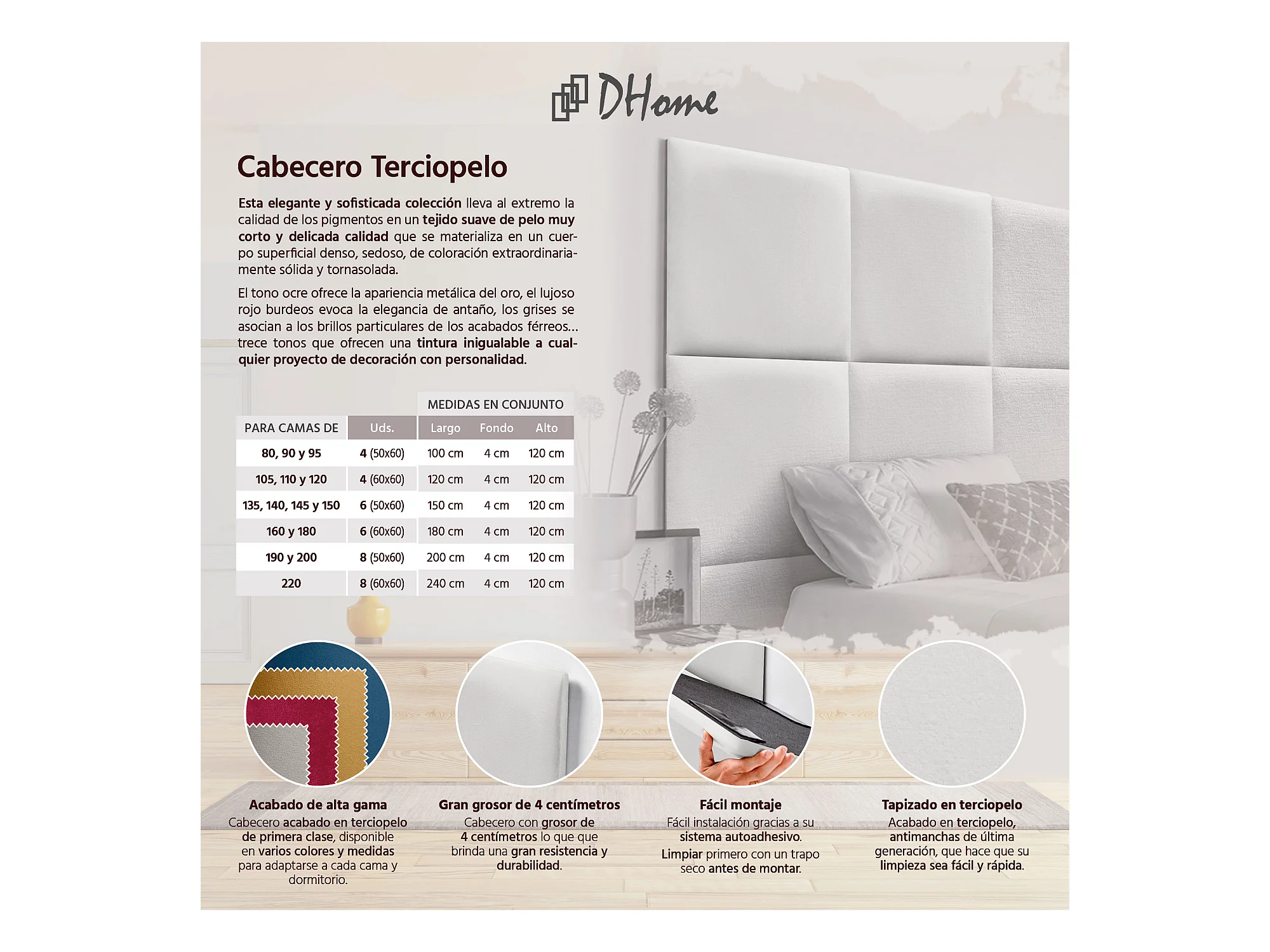 DHOME Premium fluwelen gestoffeerd hoofdeinde samengesteld uit verwisselbare zelfklevende panelen Luxe slaapkamer opgevuld (wit, 80cm)