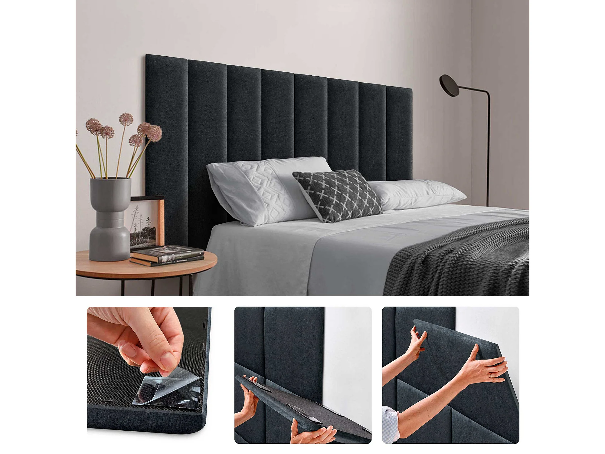 DHOME set van 6 zelfklevende gestoffeerde panelen voor muur, geluidsabsorberend, schokbescherming, hoofdbord (Zwart, 60x30cm, x6)