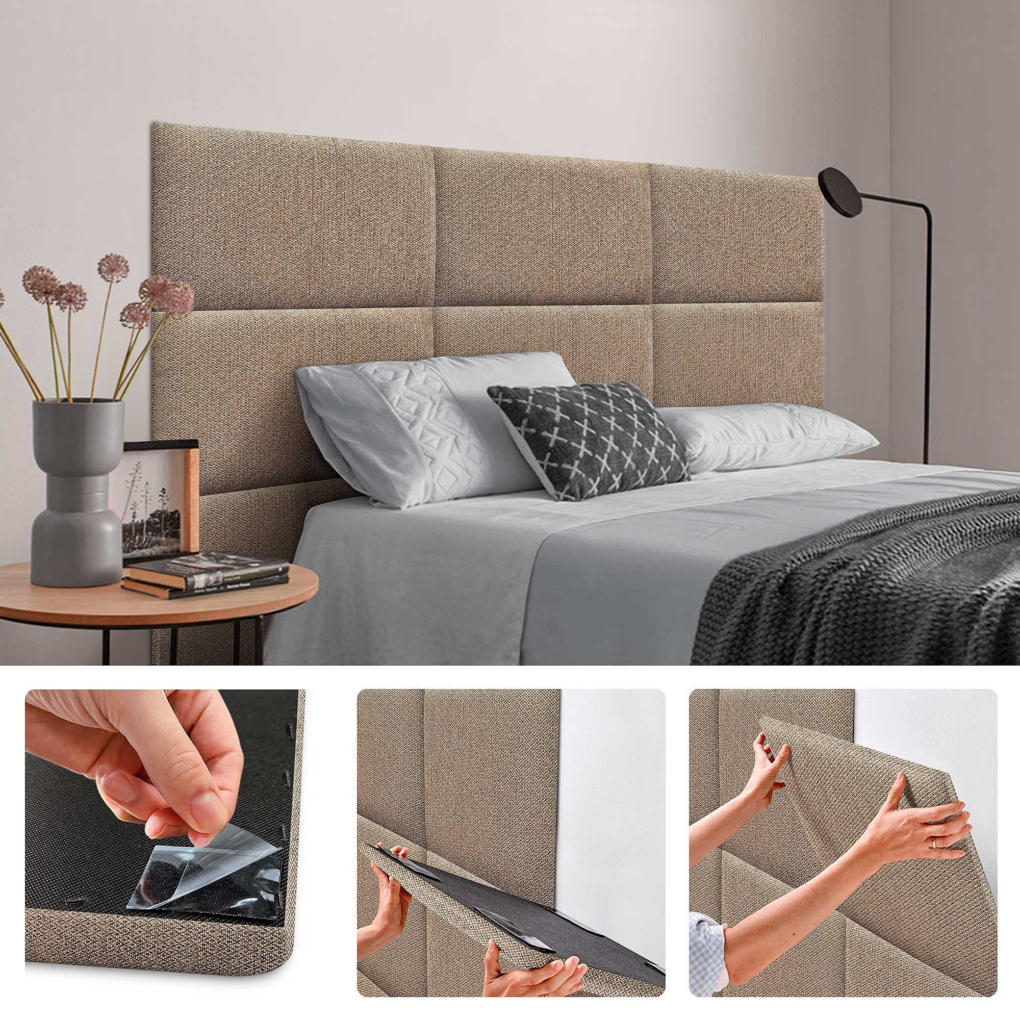 DHOME Set van 8 Luxe Stoffen Zelfklevende Gestoffeerde Panelen voor Muur, Geluidsabsorberend en Beschermend (Golden Wood, 60x50cm, x8)