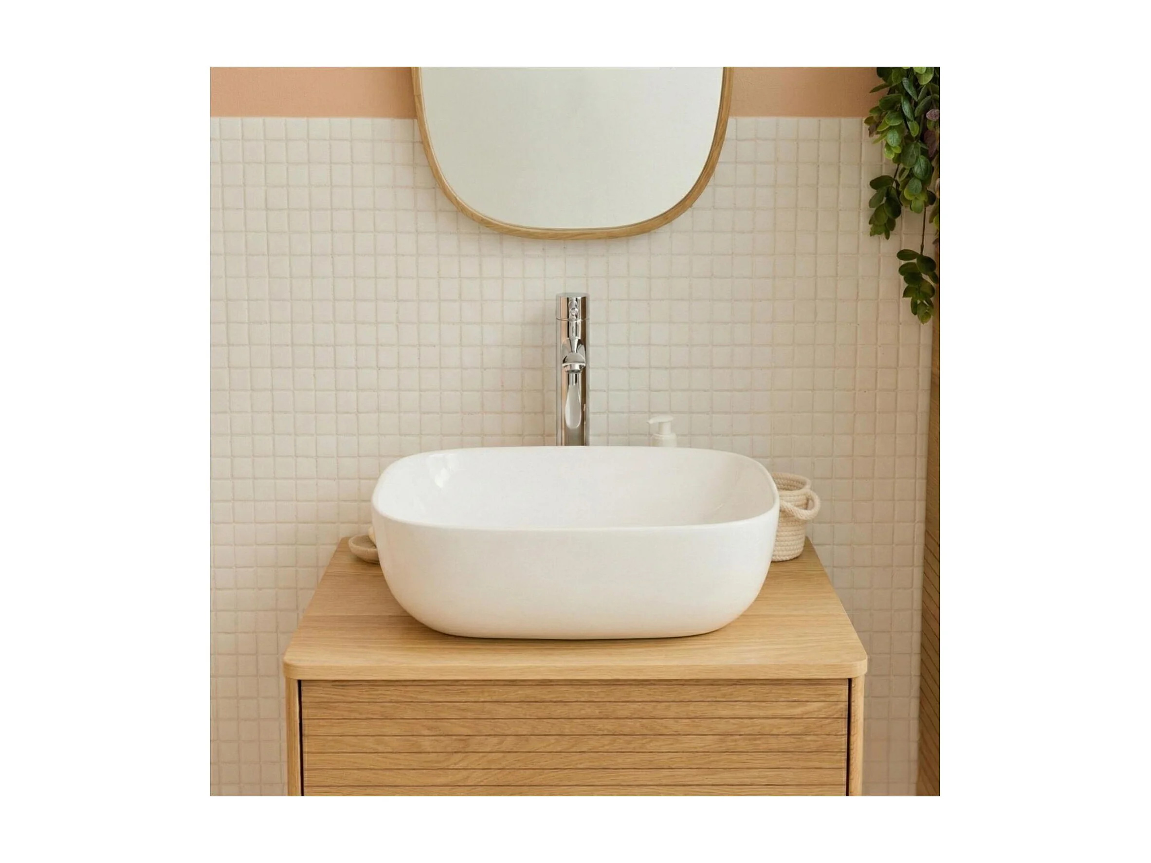 Badkamer Wastafel SucceBuy Ovale Keramische Spoelbak 60 × 36 cm - Modern, Duurzaam en Elegant Wit