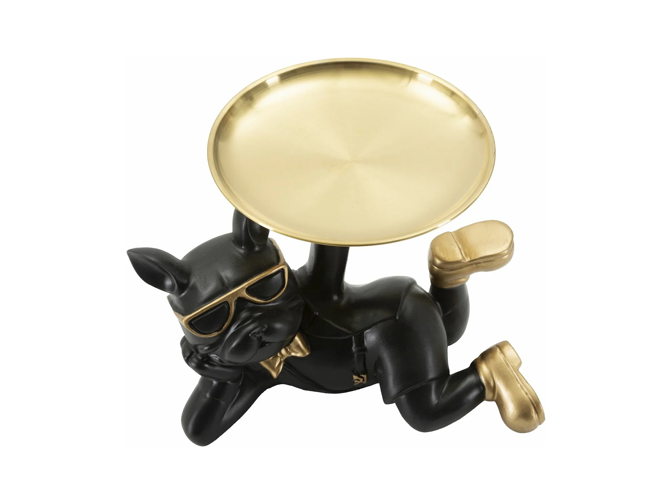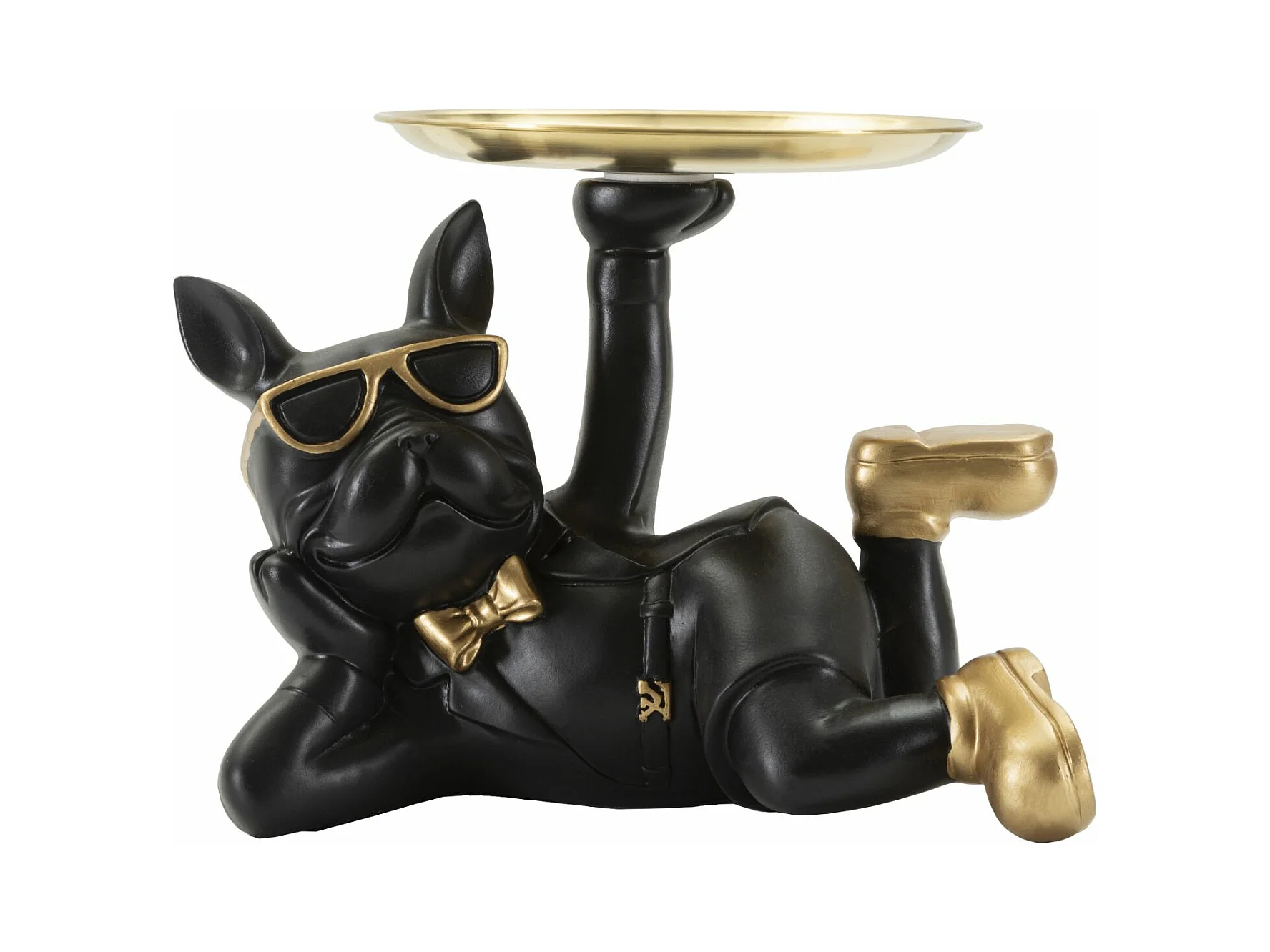 Decoratieve Bulldog opbergbakje van 21cm hoog in zwart hars