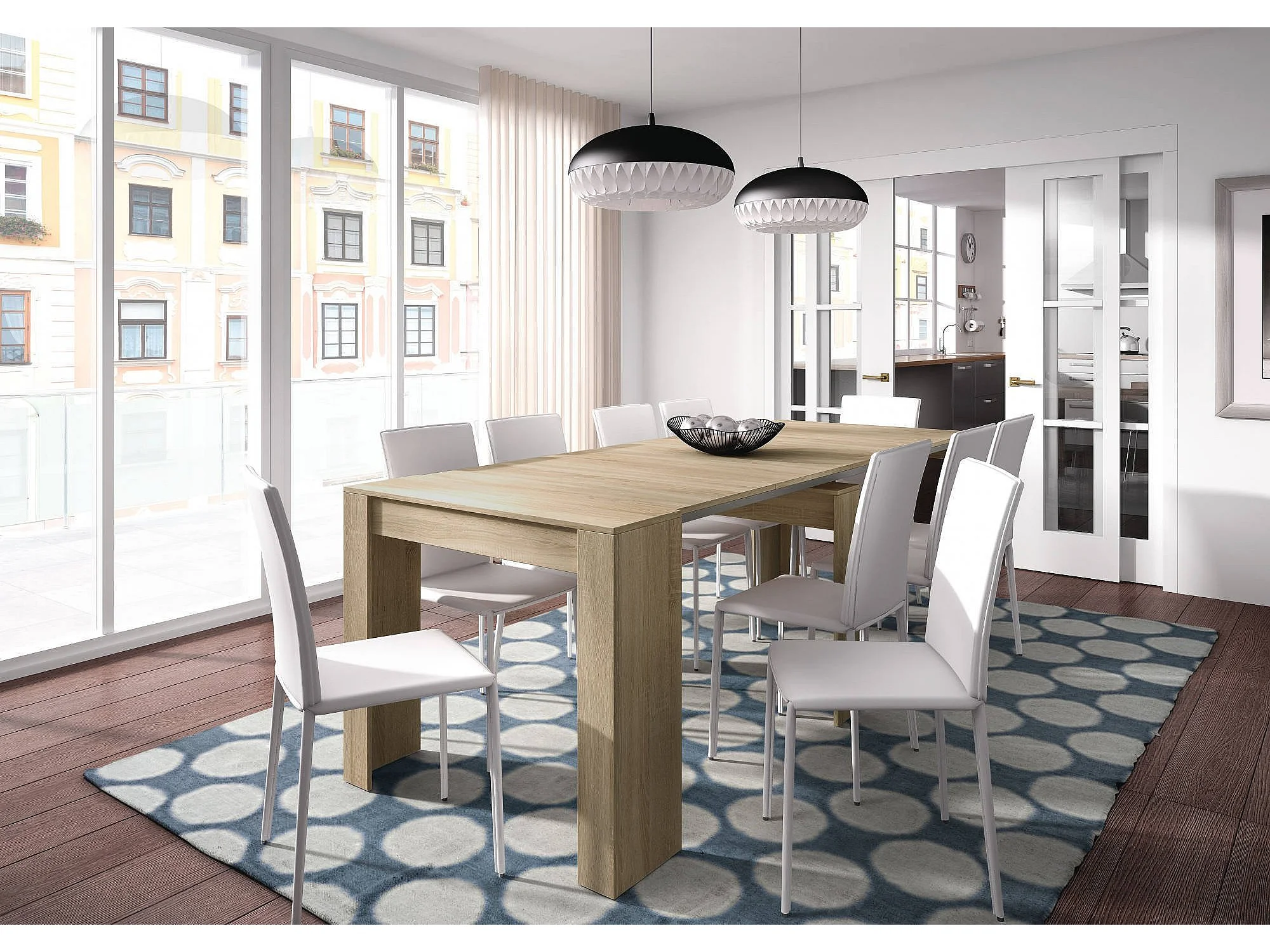 Diluna console, Uitschuifbare eettafel, Tafel met multifunctionele verlengstukken uitschuifbaar tot 10 zitplaatsen, 51/237x90h78 cm, Eiken