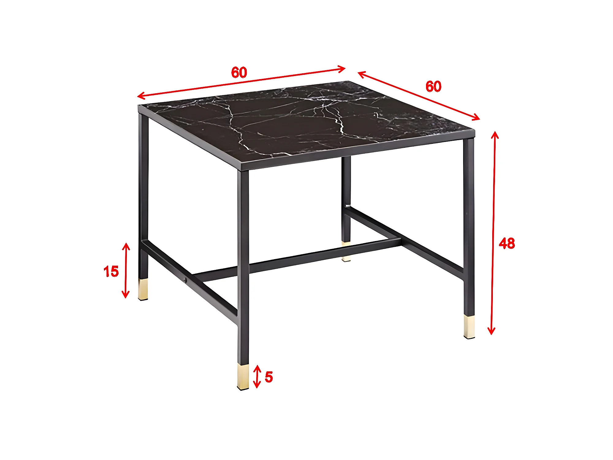 Dipp bijzettafel 60x60 cm glas zwart marmor decor.