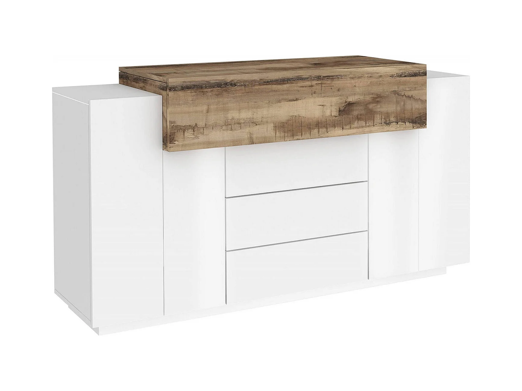 Dmem dressoir, keukendressoir met 3 deuren, woonkamerbuffet, 100% Made in Italy, 160x45h86 cm, glanzend wit en esdoorn